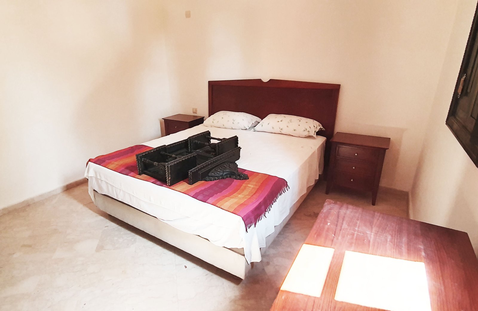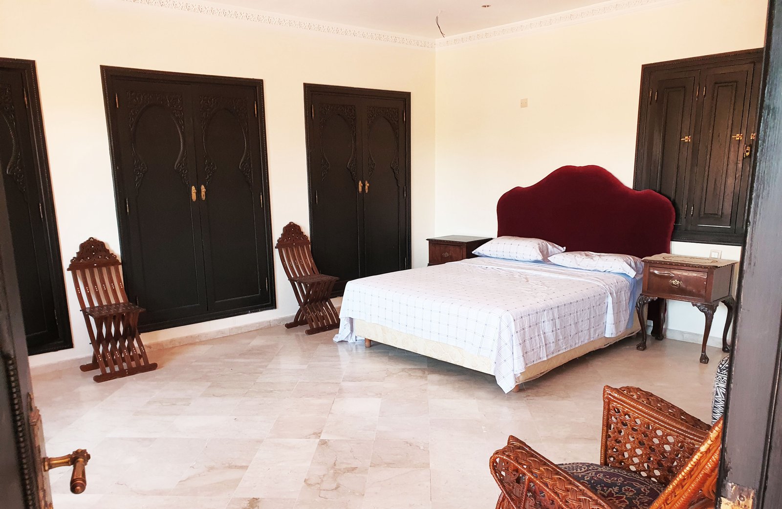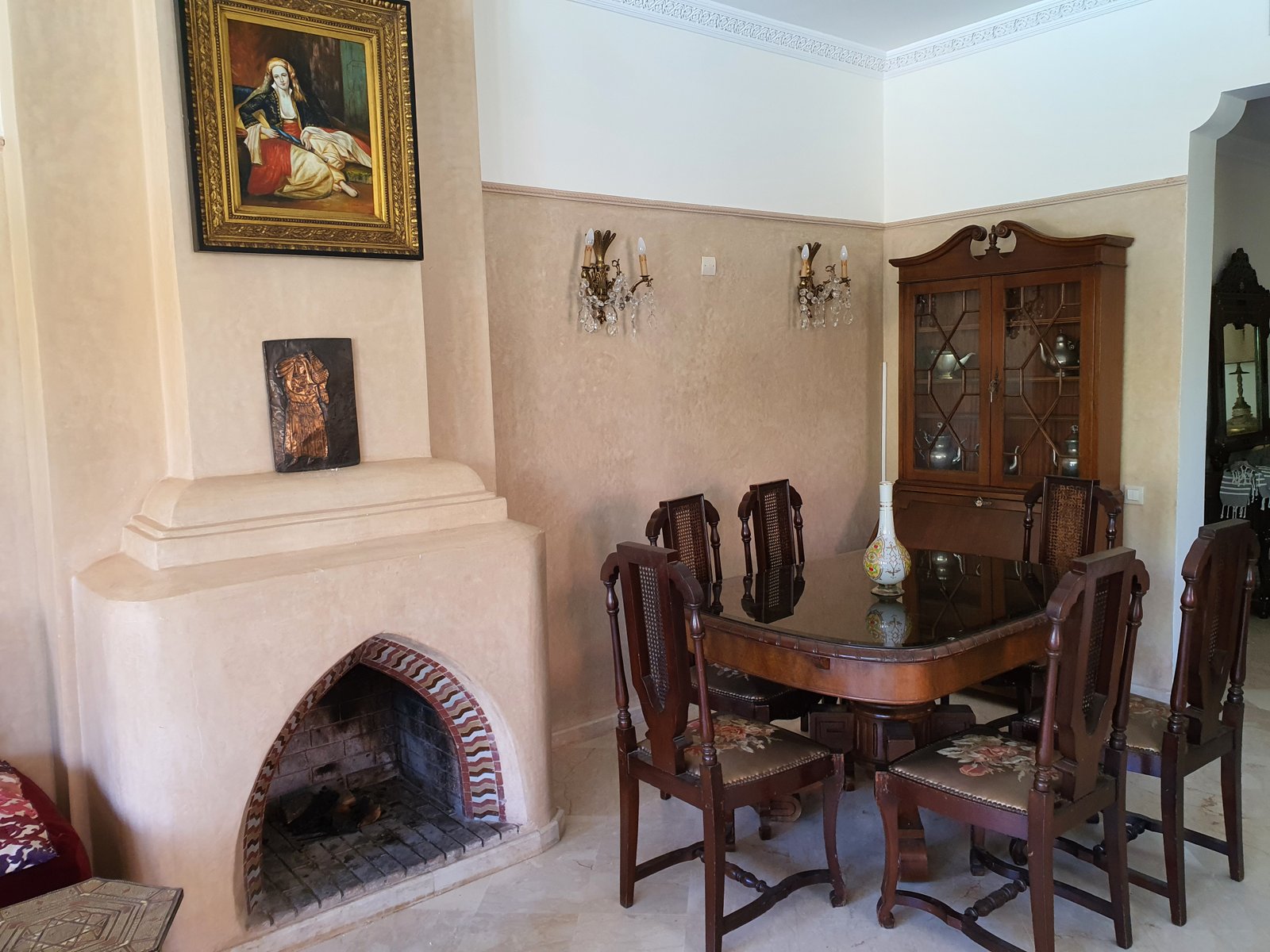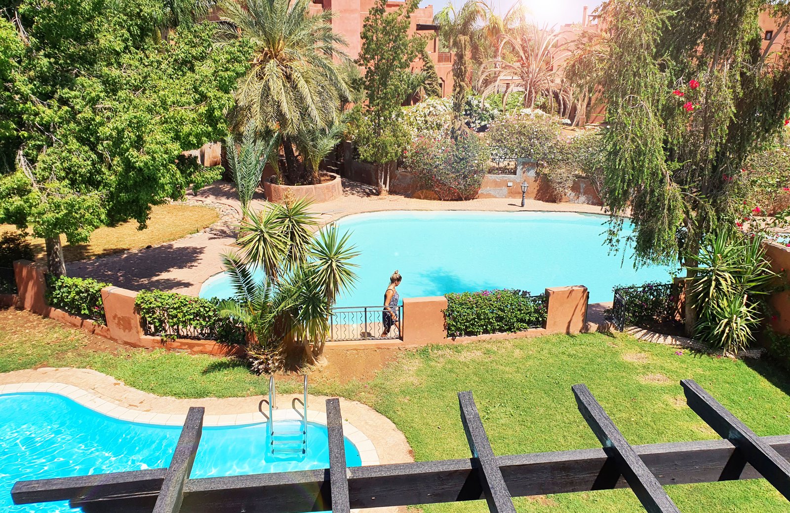 Villa au charme traditionnel de Marrakech, à louer à River Palm. La résidence est connue pour ses fameuses lagunes parcourant chaque villa, en plus des piscines privées. Un vrai oasis qui fait le bonheur des familles, des jeunes couples, ou des personnes retraitées qui cherchent le dépaysement total. La villa sur deux étages dispose de meubles en très bon état, de 1 chambre parentale spacieuse et 2 autres chambres, 3 salles de bain, 1 grand salon marocain, 1 petit salon victorien, 1 coin salle à manger, 1 cuisine entièrement équipée, des terrasses sur les deux étages, 1 place de Parking avec la possibilité de stationner le long de la rue aussi, un jardin avec piscine, la résidence se situe proche du grande stade de Marrakech, à 5min de la Palmeraie et seulement 15 à 20 min du centre ville. C'est une zone idéale pour les personnes qui cherchent le repos et la tranquillité.
