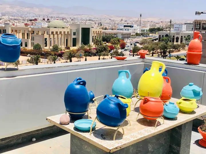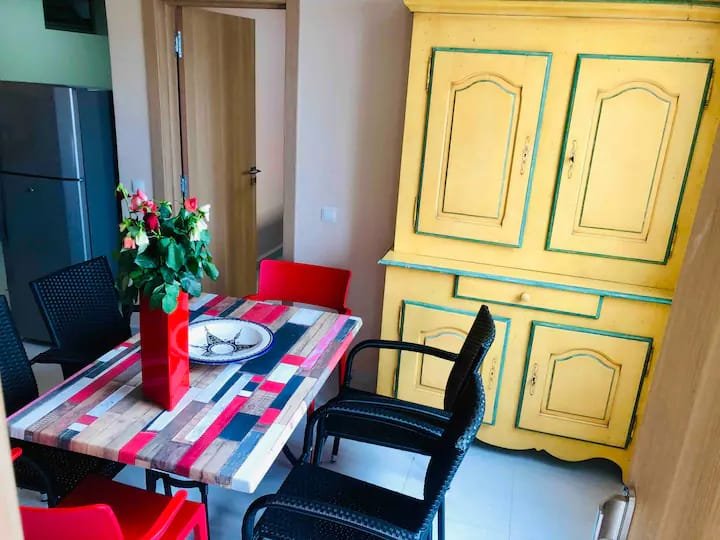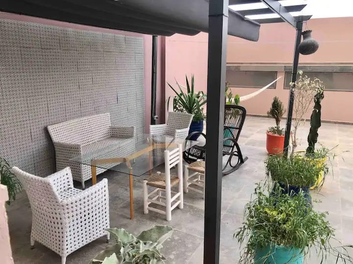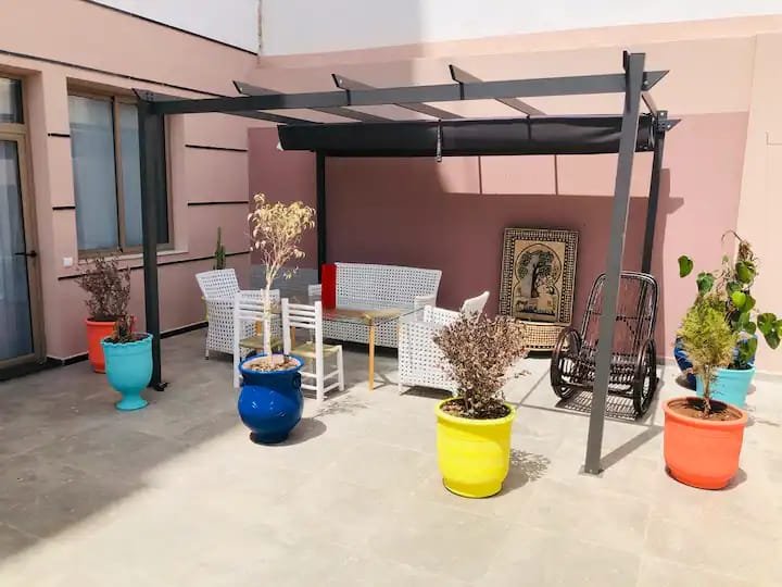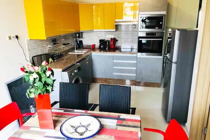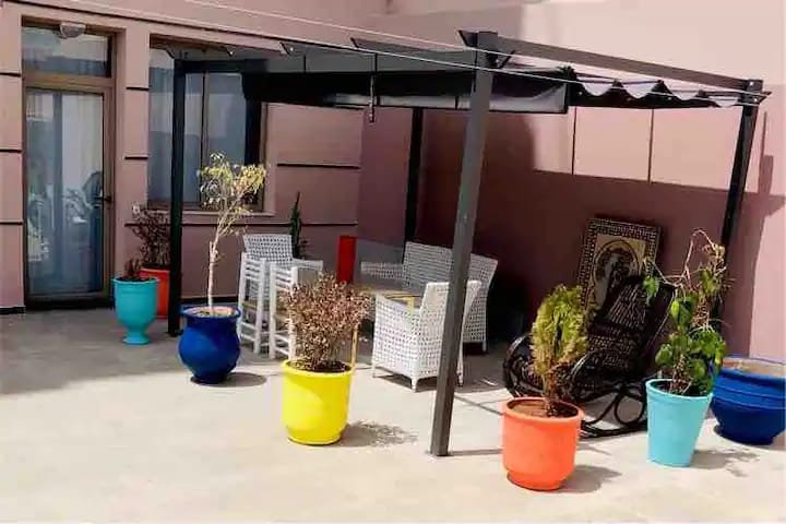A louer en location longue durée, ce beau duplex rooftop, bien meublé et équipé, composé de 2 chambres à coucher, un salon donnant à la jolie terrasse, une cuisine entièrement équipée et une salle de bain avec douche, complété par une belle terrasse et pergola avec une vue imprenable sur les montagnes,résidence sécurisée proche du secteur touristique à 5 min de la plage, proche des restaurants et commerces.....