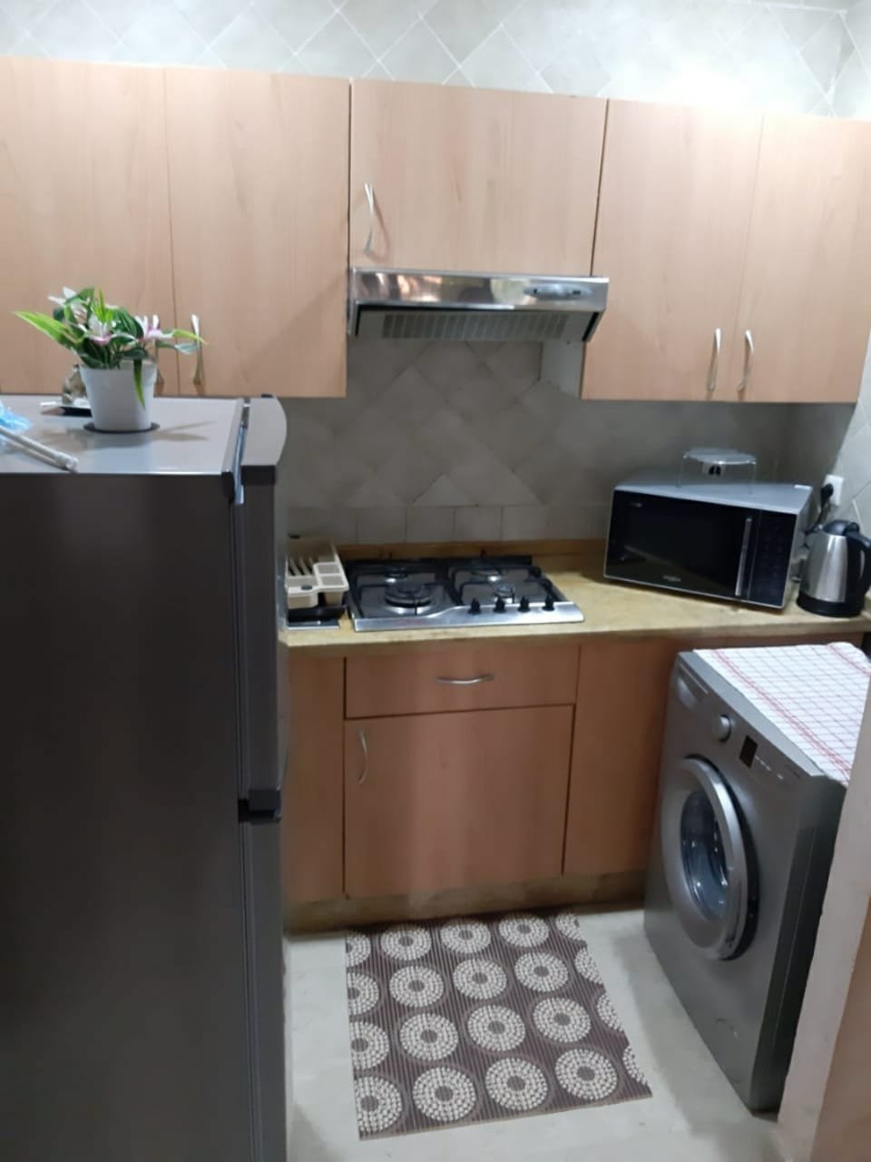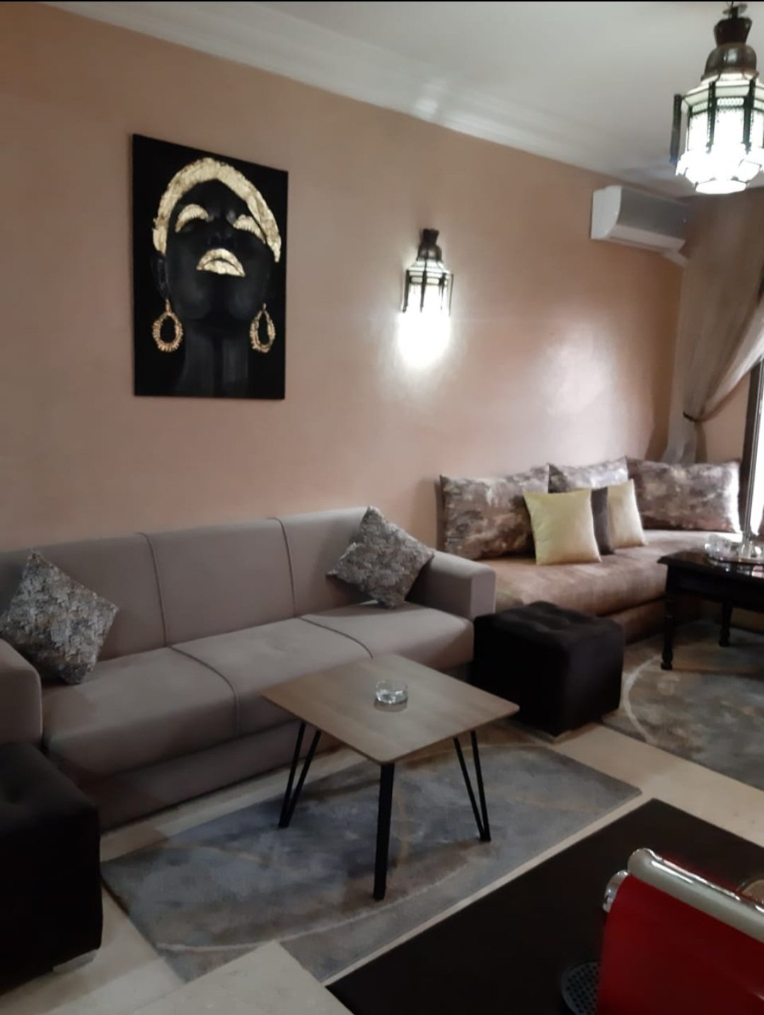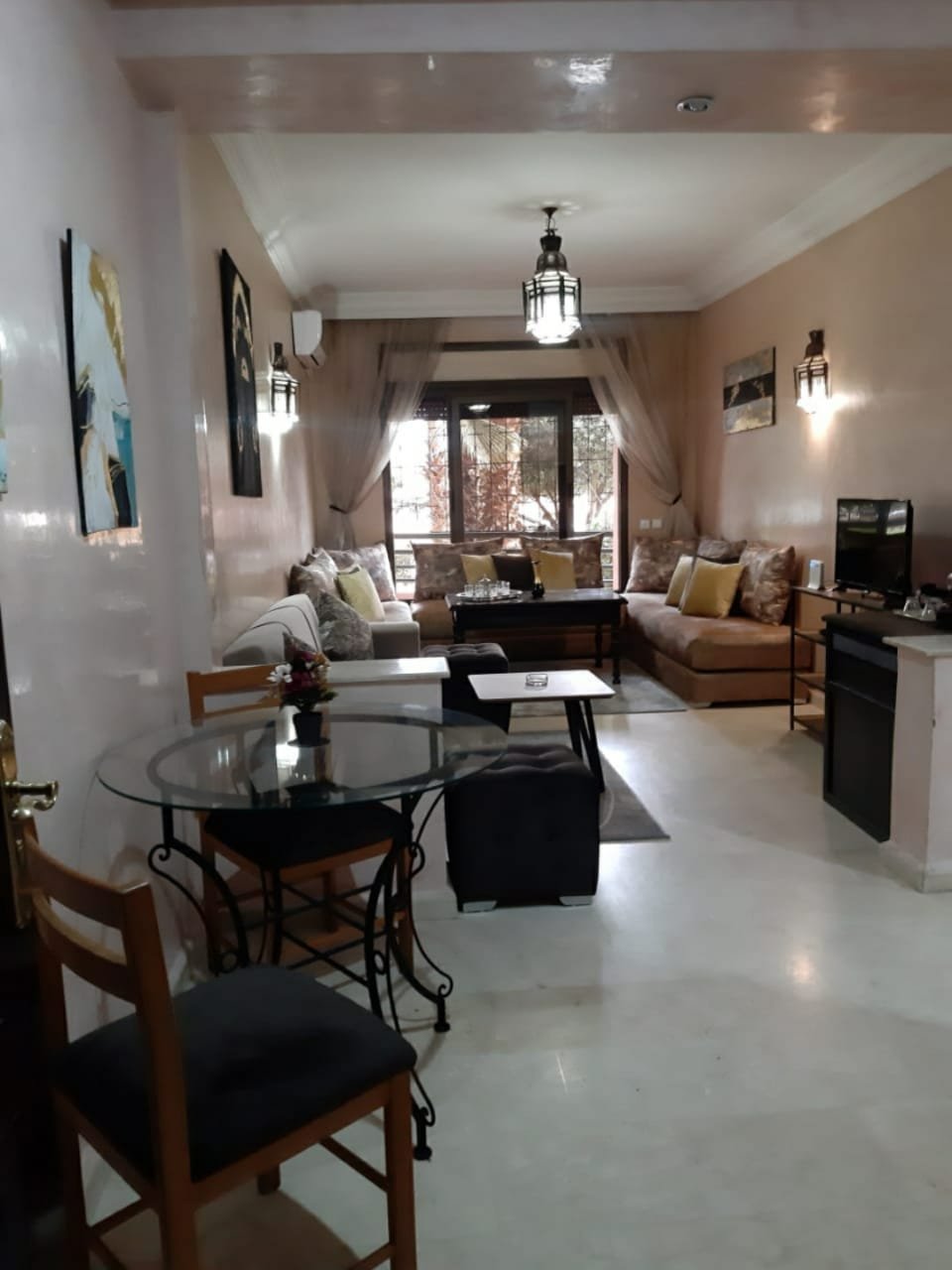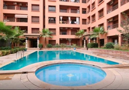 A louer en location à l'année cet joli appartement meublé et équipé, situé au rez de chaussé, composé d'un salon marocain et d'un séjour européen avec téléviseur, une cuisine équipée (frigo, lave-linge, microonde, machine à café, bouilloire, vaisselle..), et une grande salle de bain avec wc. Il est situé dans lune résidence sécurisée et bien entretenue avec sa grande piscine, au quartier hivernage et à qq pas du menara mall et de toutes commodités.