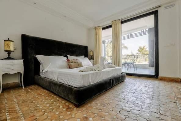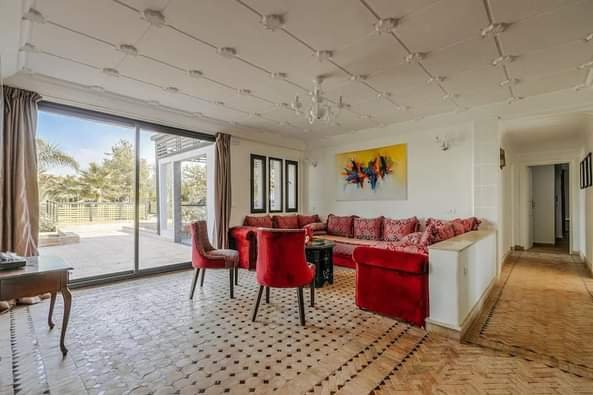 Sur la route la plus réputée de la ville Rouge : Route de l'Ourika, à 21 km du centre de la nouvelle ville « Guéliz » dans un havre de paix sur un terrain de 2800 m², Nous vous proposons en location longue durée une villa moderne bien meublée dans un cadre calme et sécurisé entourée par des espaces verts . Cette demeure de prestige dispose de 3 suites toutes avec leurs salles de bains, salon Marocain pour la réception, salon européen avec coin cheminé, salle à manger avec vue dégagée sur l'extérieur: beau jardin et piscine privative, cuisine équipée, Terrasse avec vue imprenable sur les chaines Atlas salle d'eau, salon extérieur avec cheminée et 1 véranda. ,nous vous invitions à venir découvrir cette demeure de prestige d'exception.. Prix : 15.000 dh