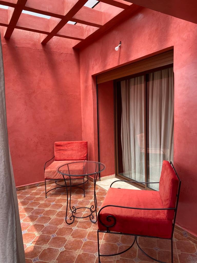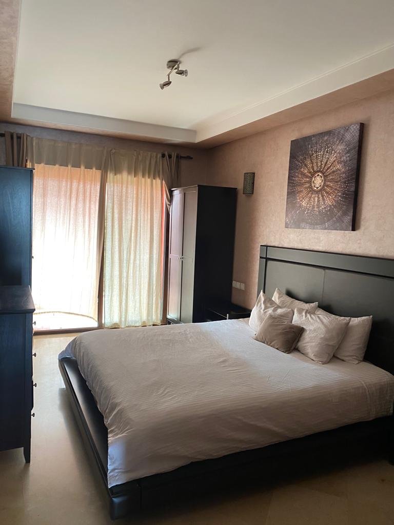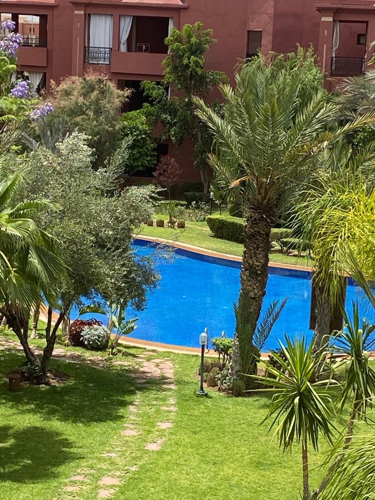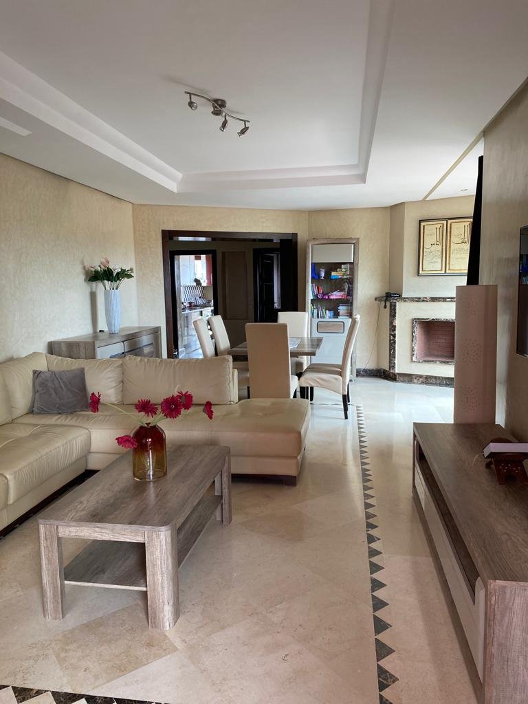 Très joli appartement de 144m² , bien meublé et entièrement équipé, composé de 2 grandes chambres chacune avec sa sdb.Un double salon avec coin cheminée et coin salle à manger, le tout ouvert sur une superbe terrasse d'environ de 20m². Résidence calme, sécurisée et bien entretenue avec beaux espaces verts et piscines. Place de parking et box disponible aussi. Situé à moins de 10m du centre ville de Marrakech et proche de toutes les commodités Loyer meublé : 8.000 dh/ mois hors charges de syndic.