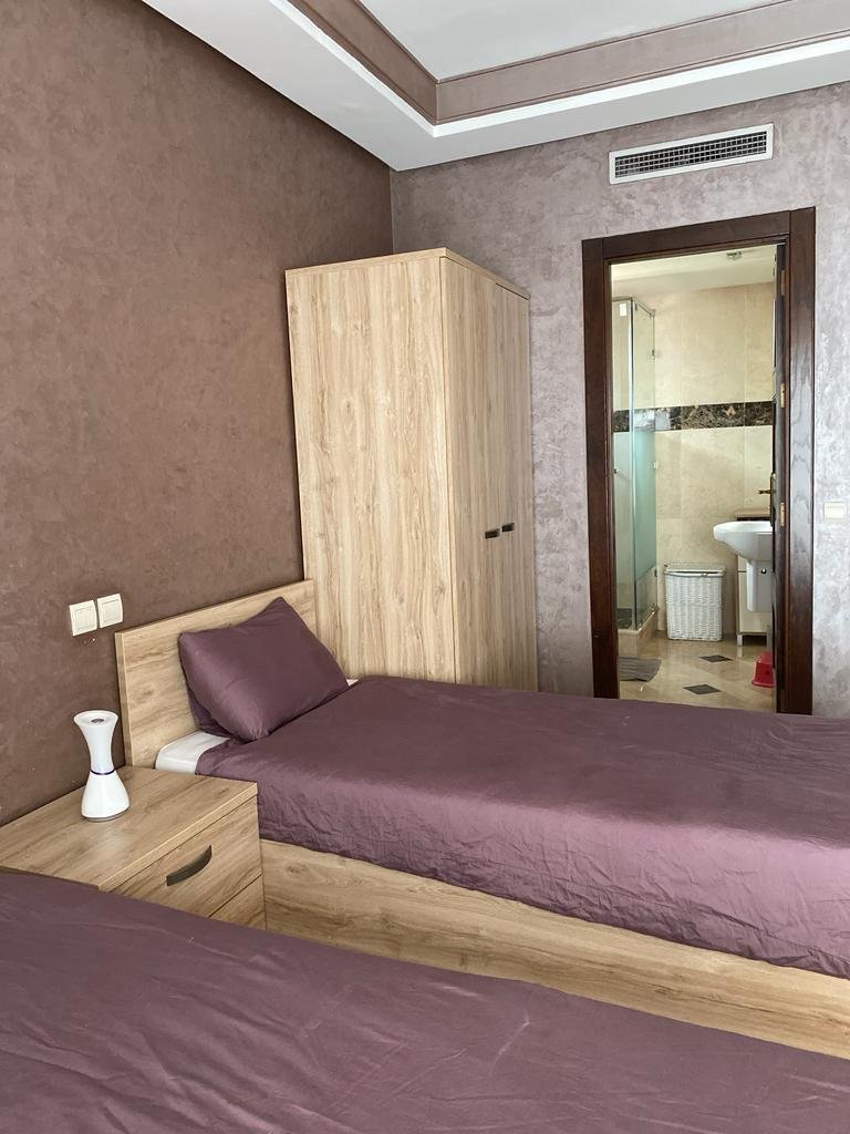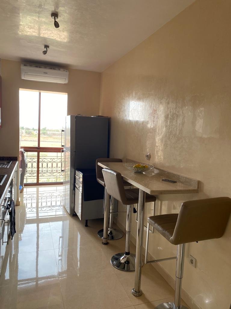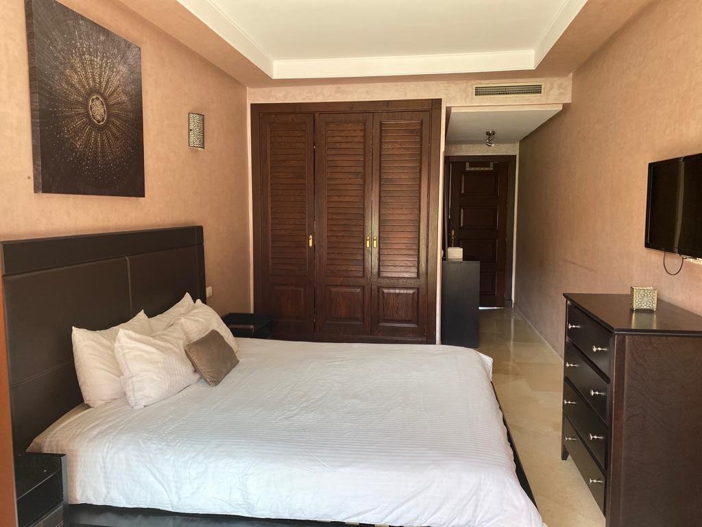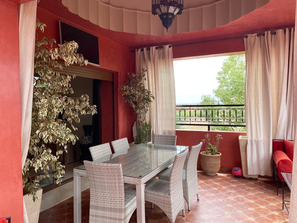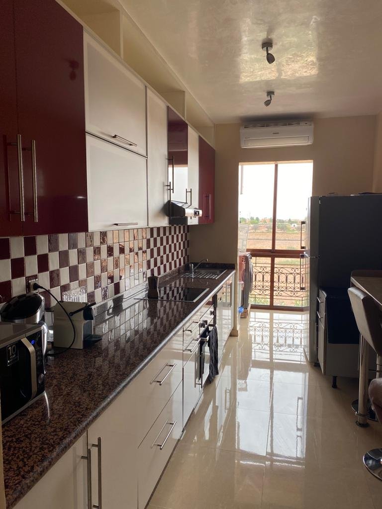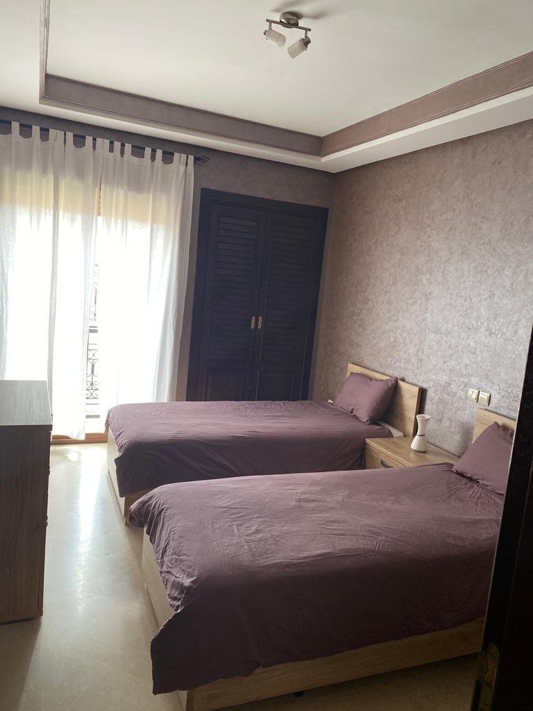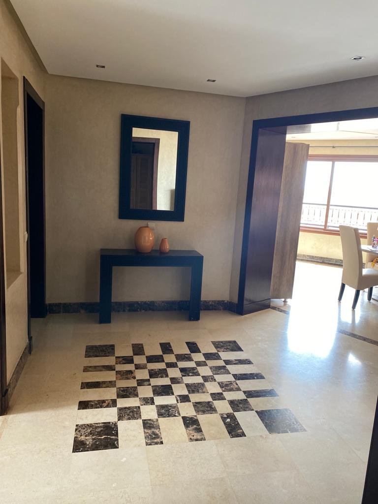 Très joli appartement d'une superficie de 144m², composé de 2 grandes chambres chacune avec sa sdb.Un double salon avec coin cheminée et coin salle à manger, le tout ouvert sur une superbe terrasse d'environ de 20m². Résidence calme, sécurisée et bien entretenue avec beaux espaces verts et piscines. Place de parking et box disponible aussi. Situé à moins de 10m du centre ville de Marrakech et proche de toutes les commodités.