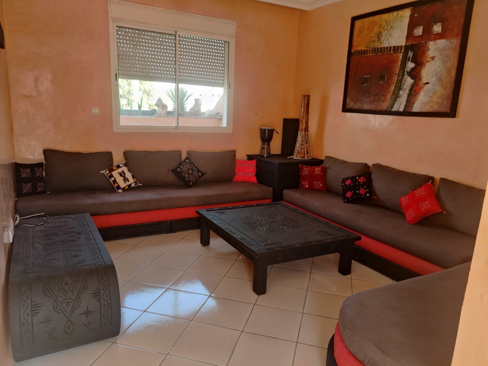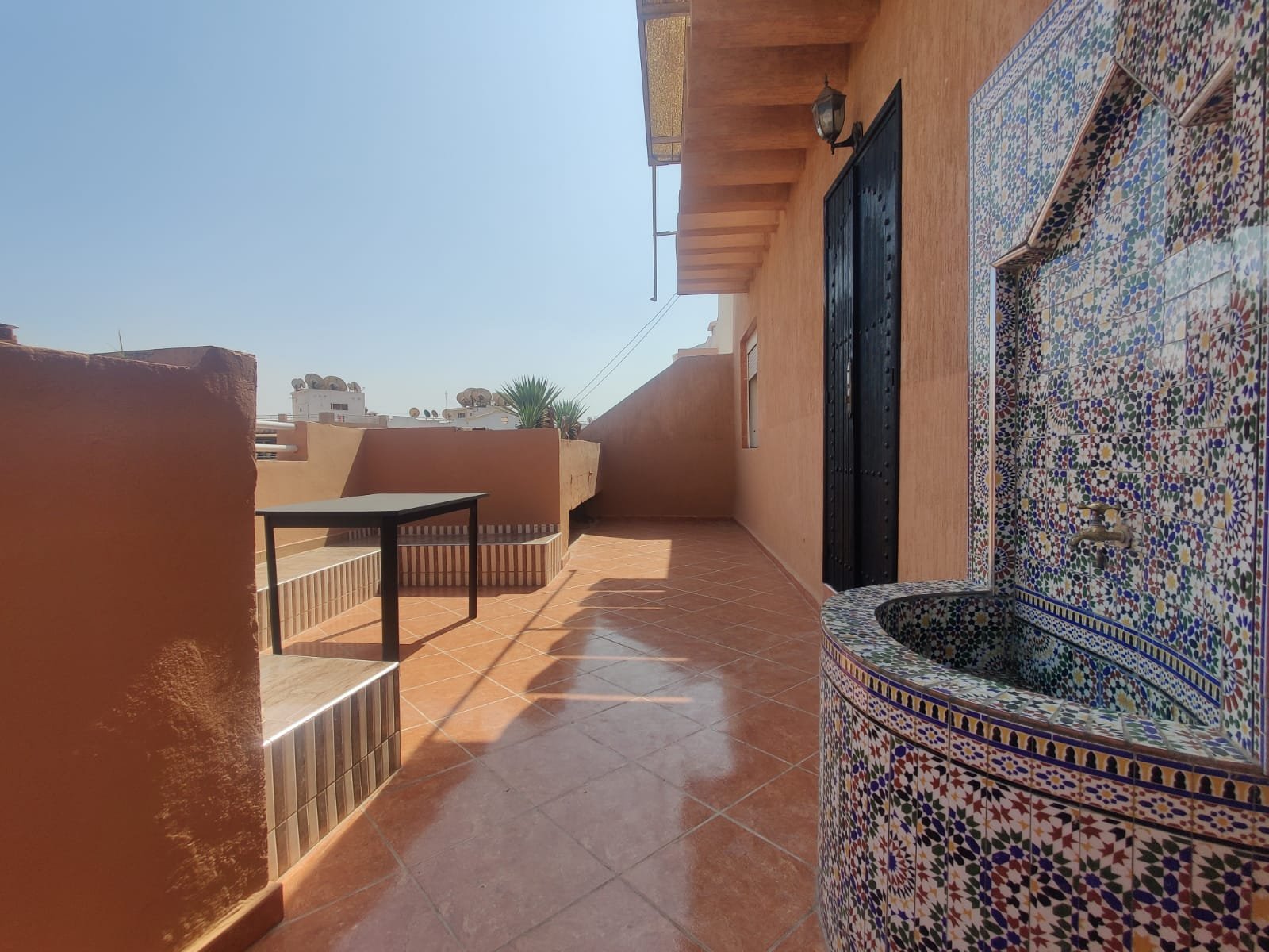 Bel appartement à louer longue durée, meublé et équipé avec soin, propre, d'une superficie de 100m² y compris la terrasse, situé au 5ème étage avec ascenseur, composé de 2 chambres avec placards et balcon, un salon, 1 sdb avec douche italien, une cuisine équipée plus une grand terrasse privative, résidence sécurisée et bien entretenue au quartier Salam.