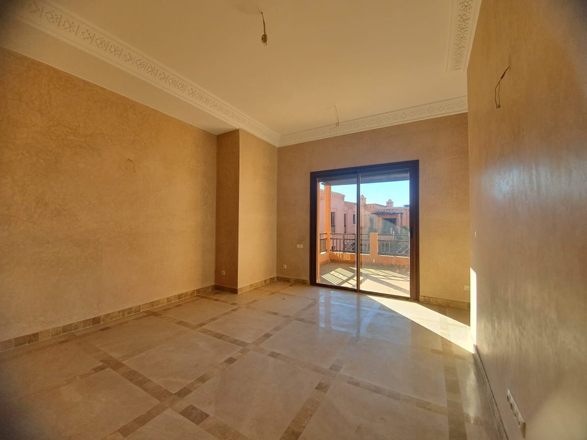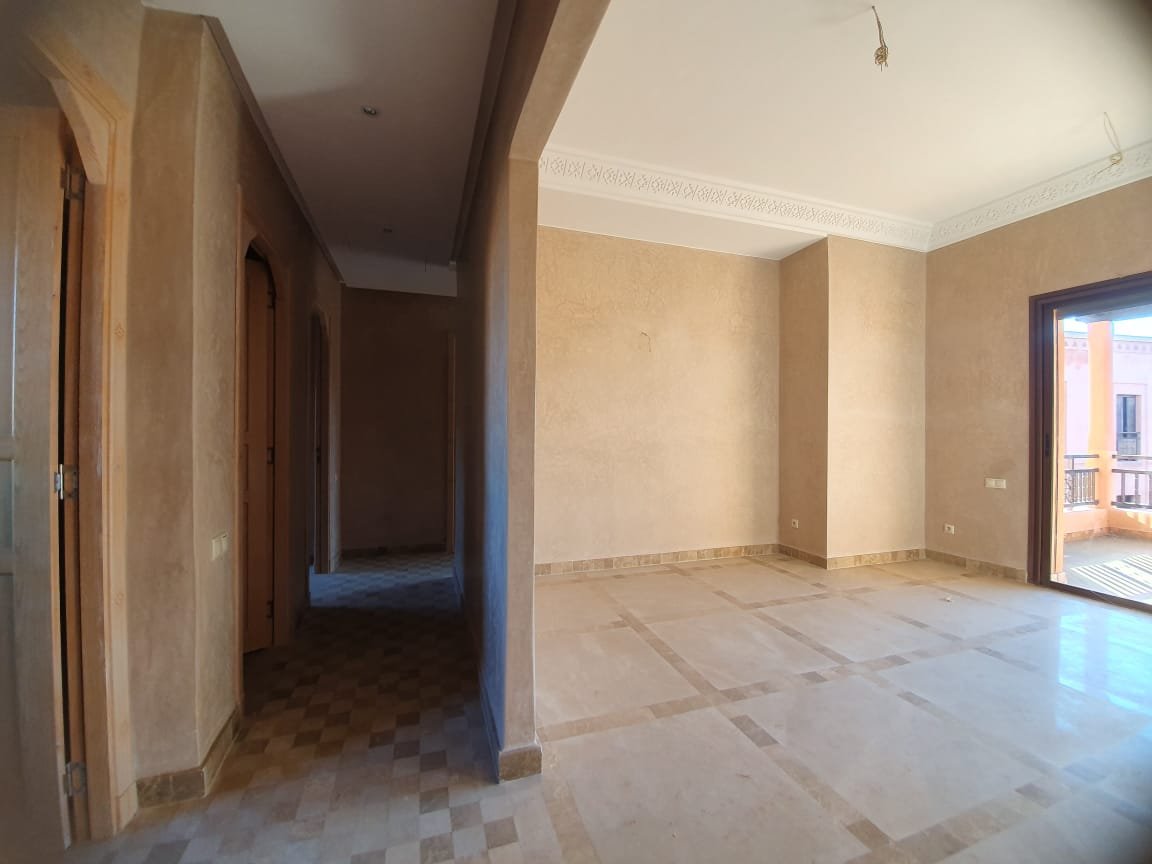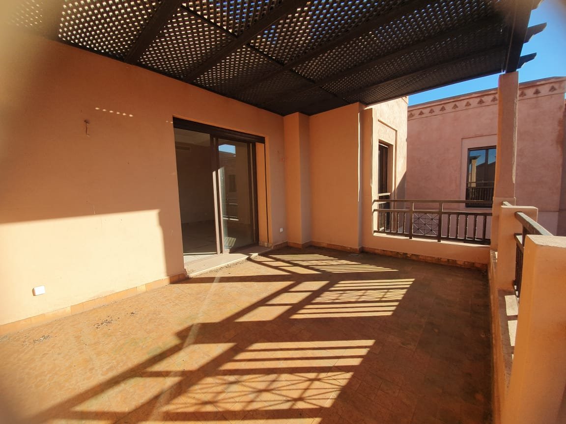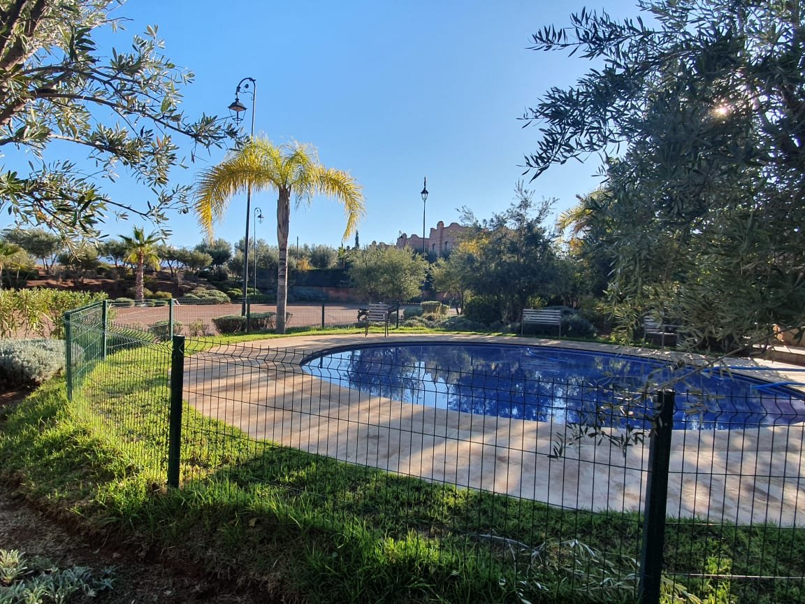 Bel appartement , ensoleillé à louer vide dans le beau resort golfique "les jardins de l'Atlas" avec piscines; restaurants, tennis au KM. 12 sur la route de l'Ourika. il se compose de: 2 chambres avec dressing, 1 sdb, 1 wc invités , salon avec cheminée et accès à la grande terrasse d'environ 20m² avec une superbe vue sur les espaces verts, et l'Atlas, une cuisine. Une place au parking sous-terrain Résidence Calme entièrement sécurisée 24H/24 à seulement 10mn du centre de Marrakech au Km 12 sur la route de l'Ourika. Loyer: 6500 dh hors charges de copropriétés