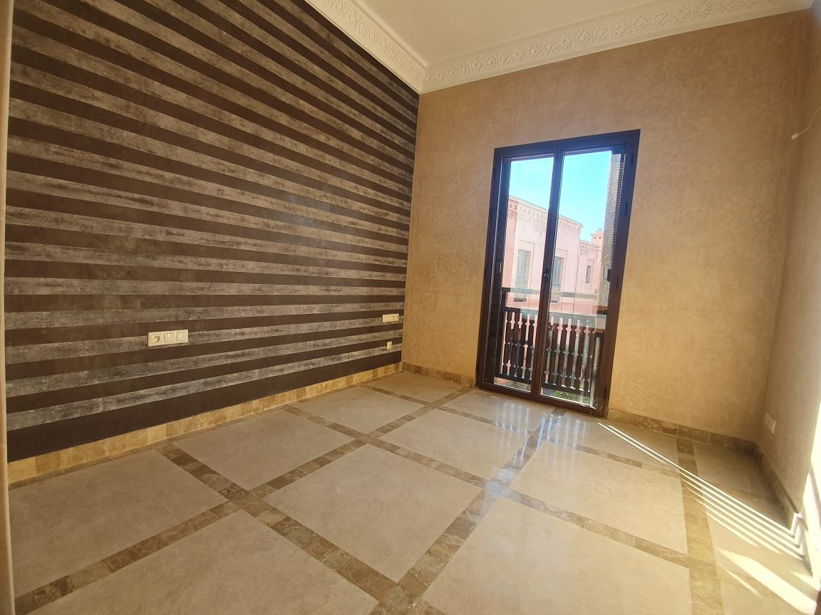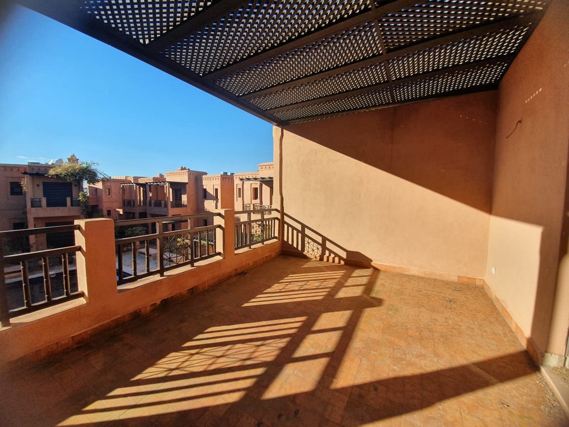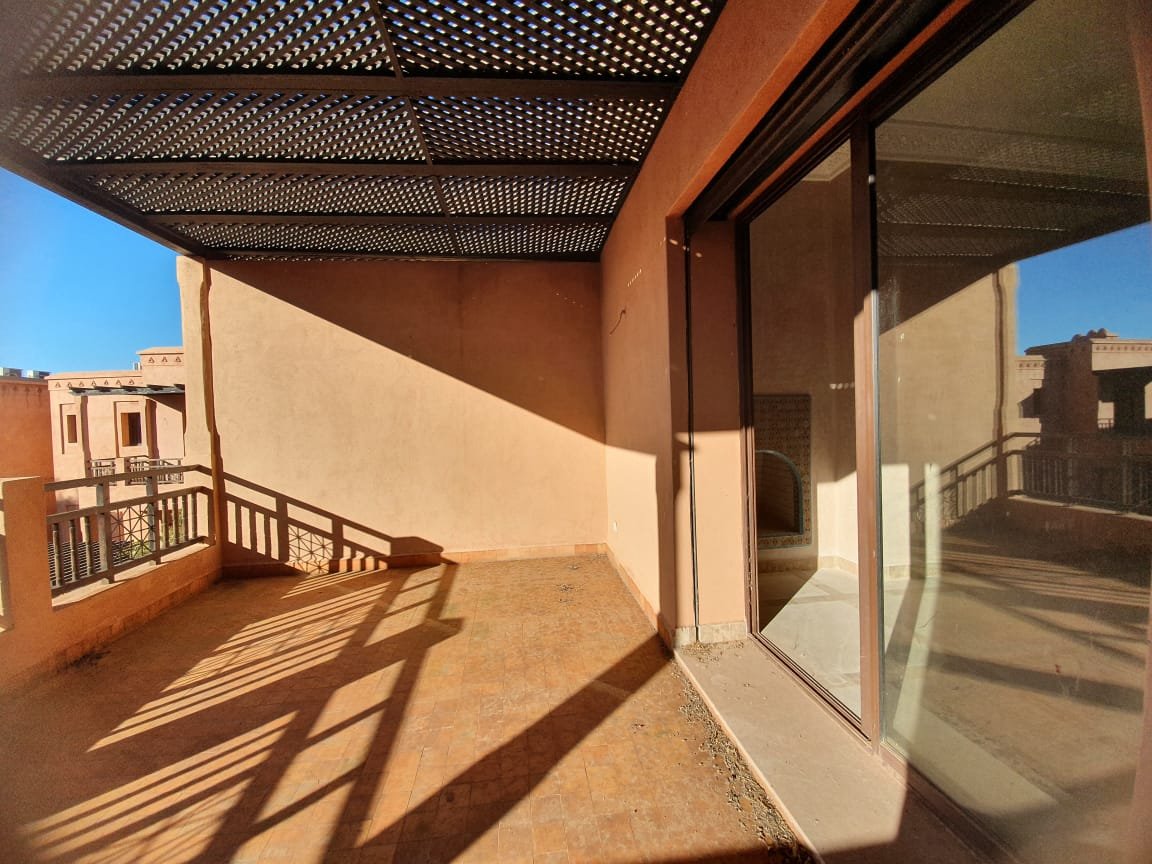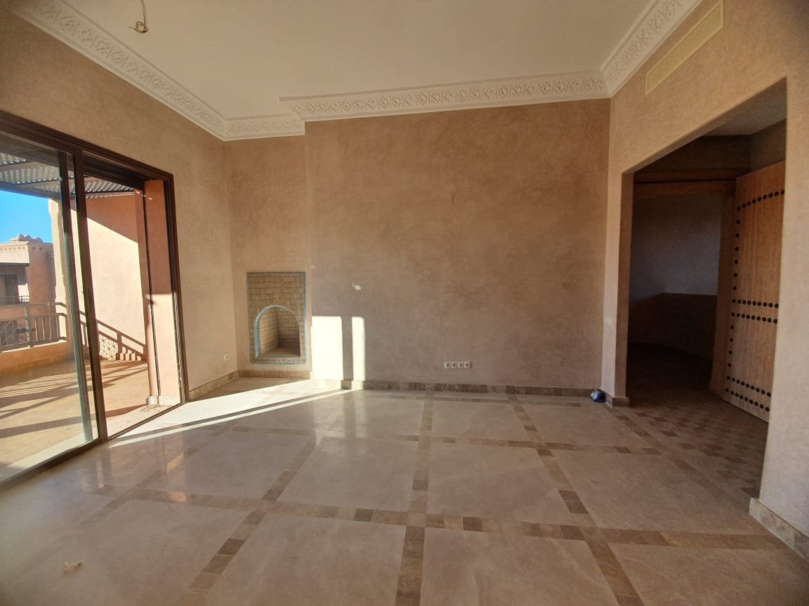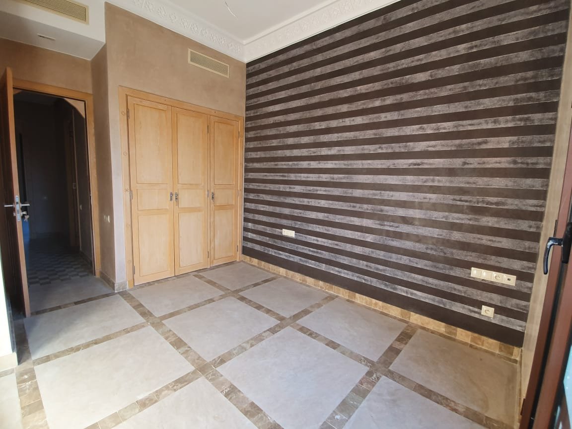 Bel appartement , ensoleillé à louer vide dans le beau resort golfique "les jardins de l'Atlas" avec piscines; restaurants, tennis au KM. 12 sur la route de l'Ourika. il se compose de: 2 chambres avec dressing, 1 sdb, 1 wc invités , salon avec cheminée et accès à la grande terrasse d'environ 20m² avec une superbe vue sur les espaces verts, et l'Atlas, une cuisine. Une place au parking sous-terrain Résidence Calme entièrement sécurisée 24H/24 à seulement 10mn du centre de Marrakech au Km 12 sur la route de l'Ourika. Loyer: 6500 dh hors charges de copropriétés
