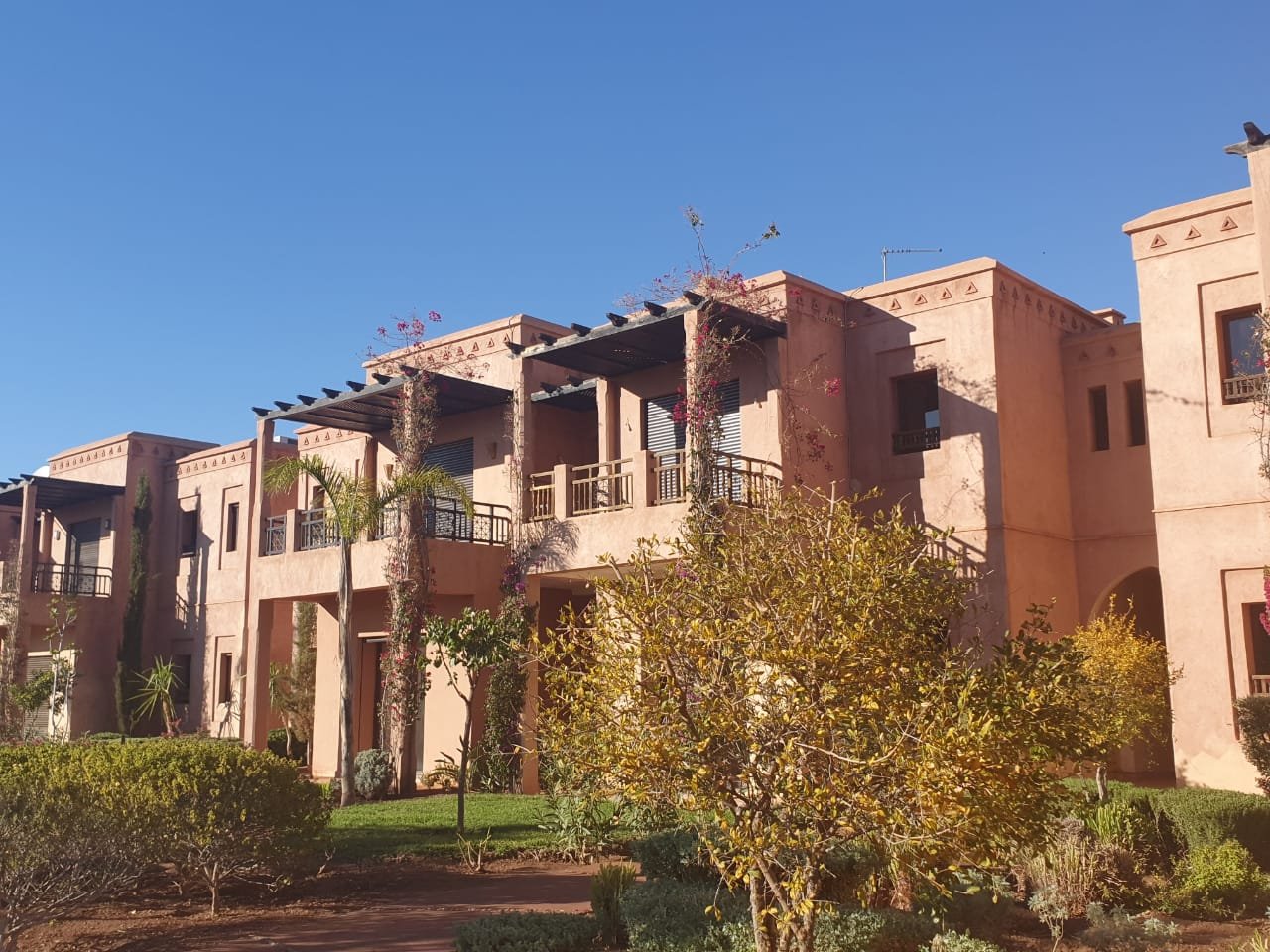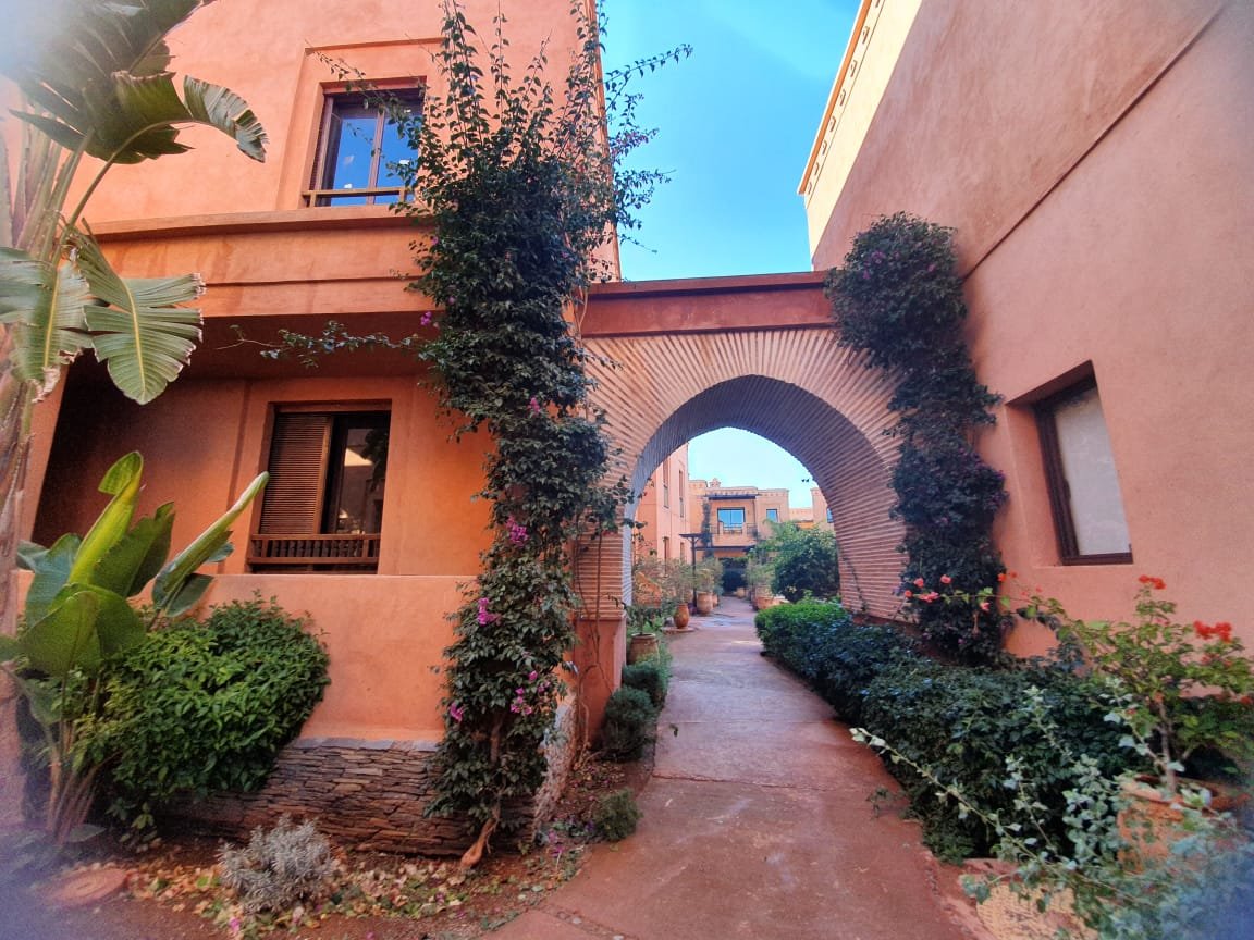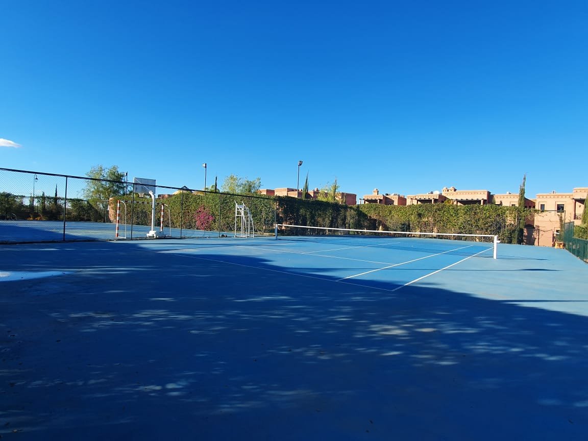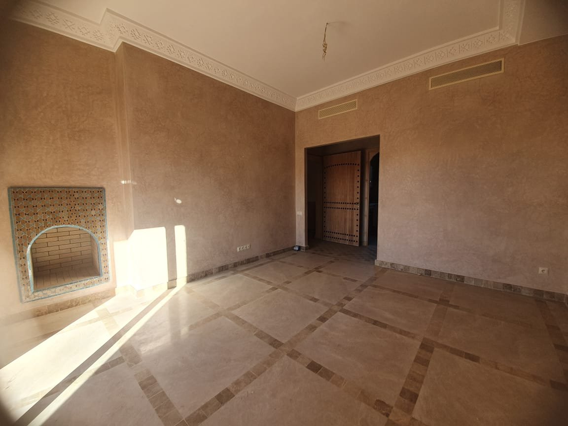 Bel appartement , ensoleillé à louer vide dans le beau resort golfique "les jardins de l'Atlas" avec piscines; restaurants, tennis au KM. 12 sur la route de l'Ourika. il se compose de: 2 chambres avec dressing, 1 sdb, 1 wc invités , salon avec cheminée et accès à la grande terrasse d'environ 20m² avec une superbe vue sur les espaces verts, et l'Atlas, une cuisine. Une place au parking sous-terrain Résidence Calme entièrement sécurisée 24H/24 à seulement 10mn du centre de Marrakech au Km 12 sur la route de l'Ourika. Loyer: 6500 dh hors charges de copropriétés