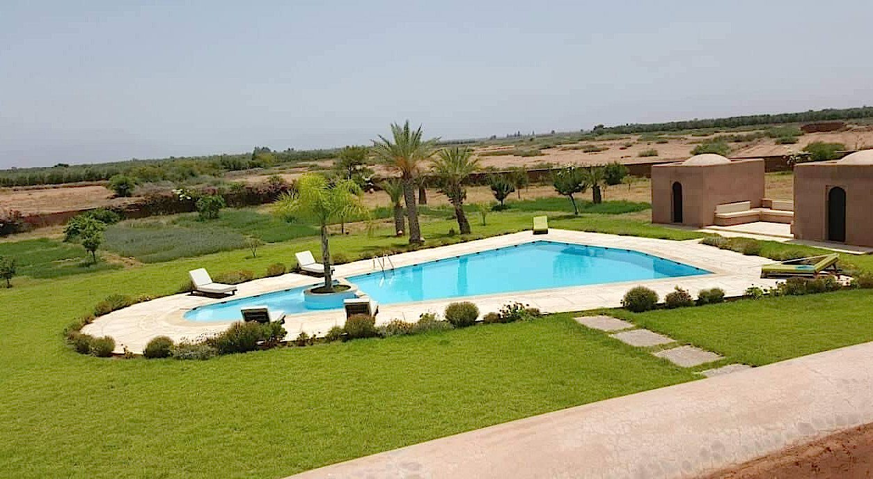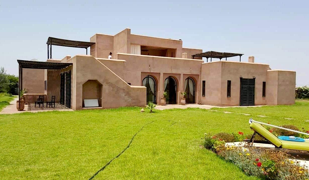 Magnifique Villa Meublée de 3 Chambres sur un grand jardin de 3500M² avec Piscine et Jardin privatifs situé à Sidi Abdellah Giat à 20 Km de Marrakech ; elle se compose de 3 Chambres Climatisée 2 Salon 1 Grande Cuisine équipée 3 SDB Jardin et Piscine 2 Chambres pour les Personnels LOYER 22.000 dh (hors chargees: gardien, entretien kardins et piscine)