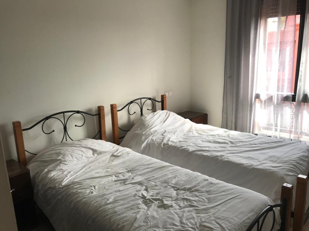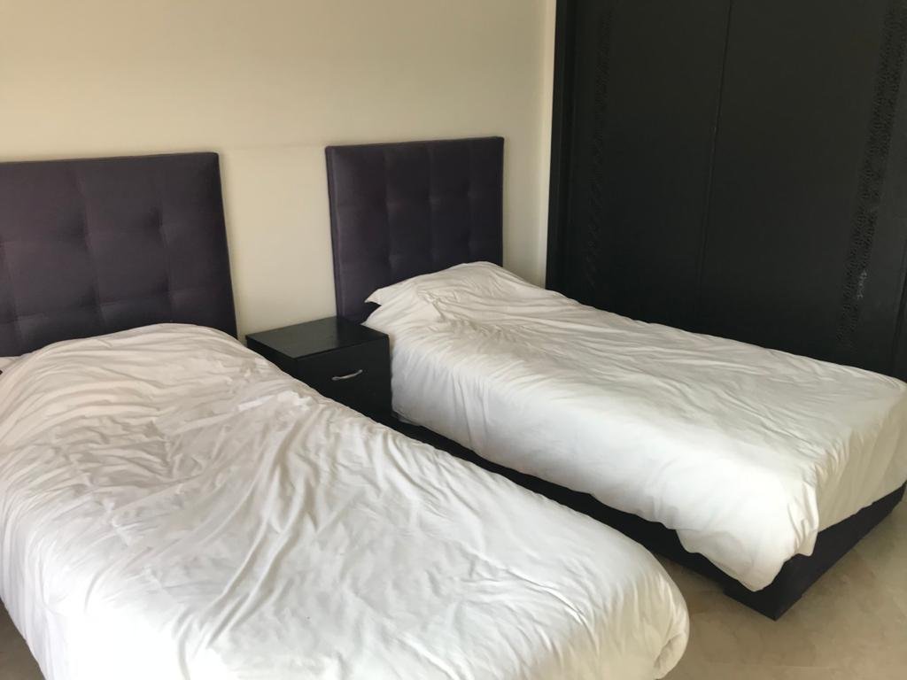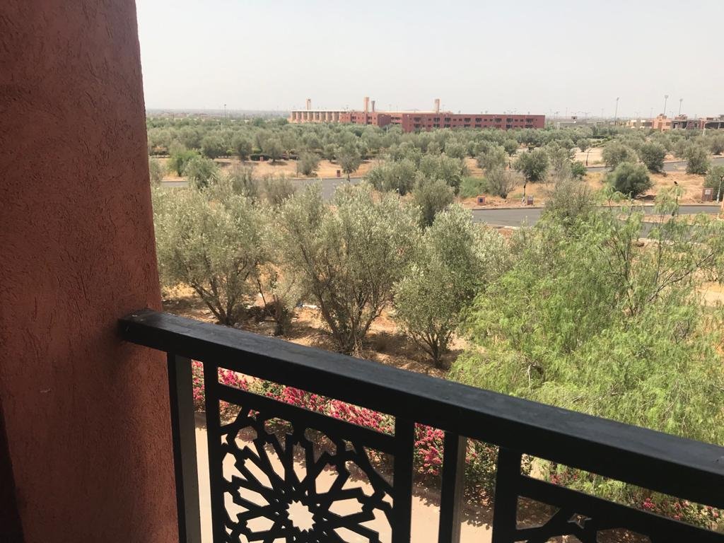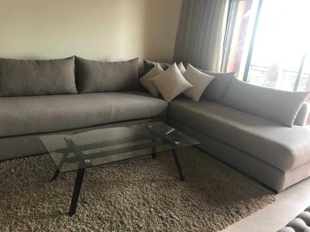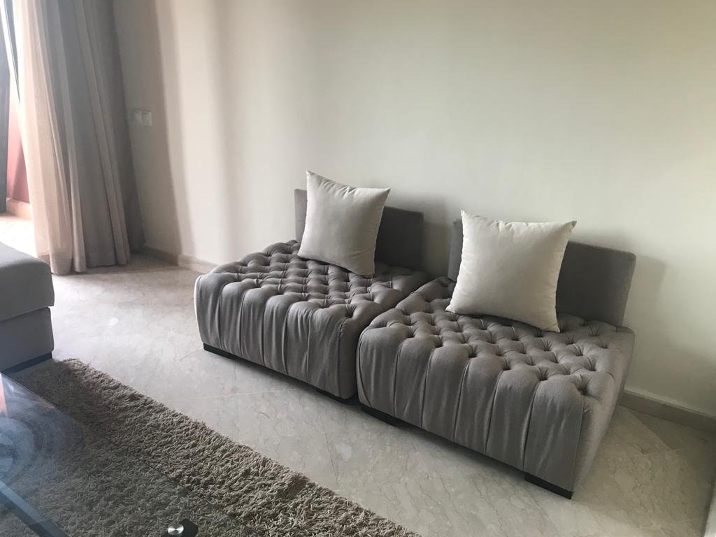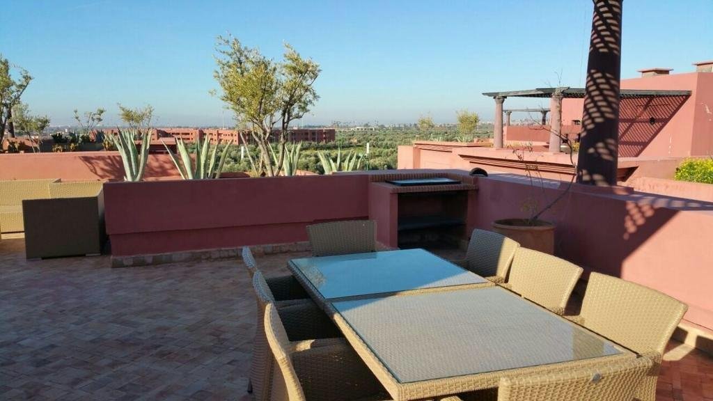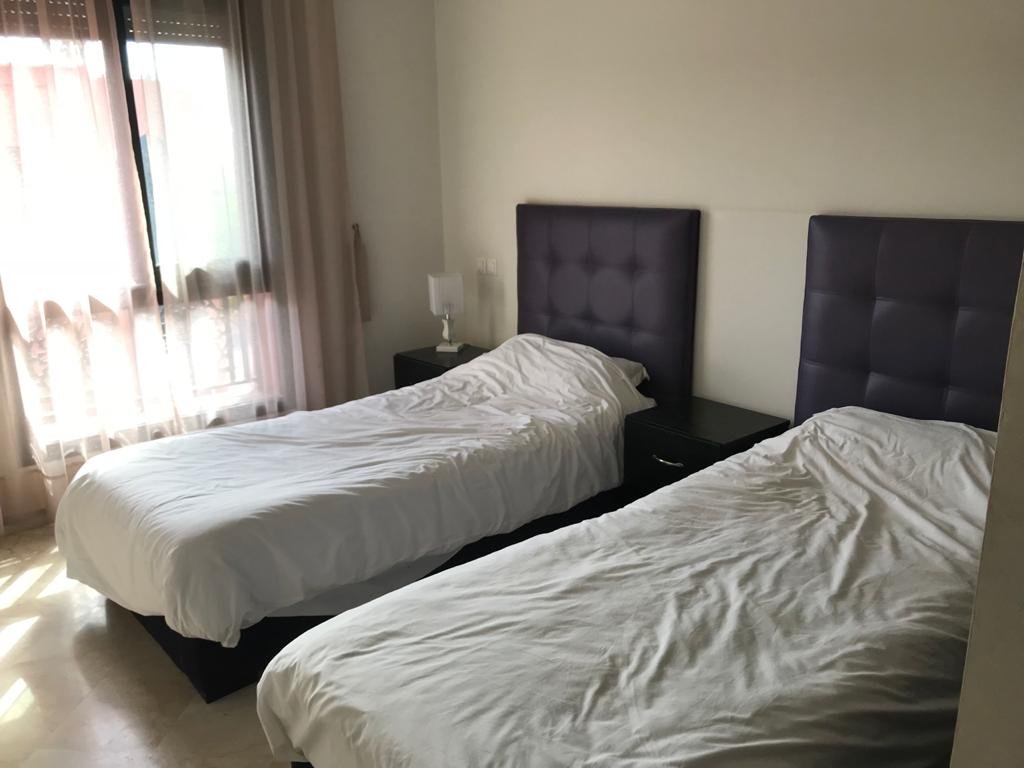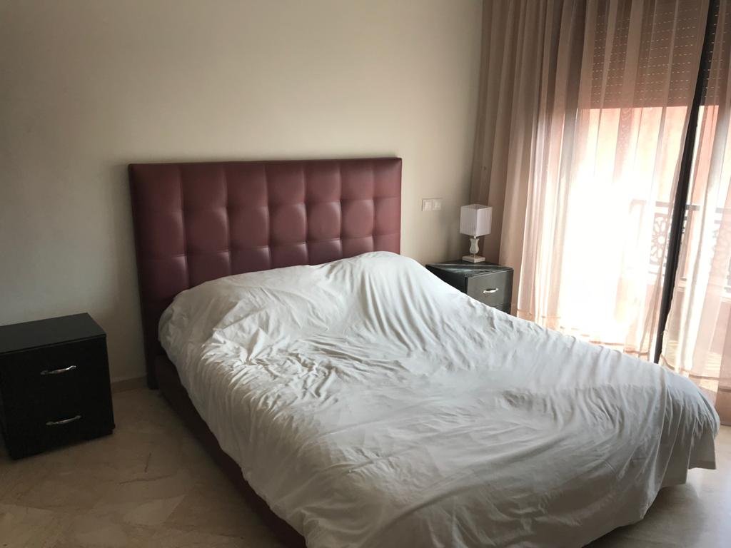 Bel Appartement dans une résidence calme, sécurisée et avec piscine. D’une superficie de 104m², l’appartement est situé au 2ème (et dernier) étage d’un immeuble de 6 appartements, avec ascenceur. L’appartement est composé de : - 3 chambres - 1 séjour - 1 salle à manger - 1 SDB dans la chambre parentale - 1 douche – toilettes - 1 cuisine équipée avec buanderie, comprenant : 1 Lave vaisselle, 1 Lave linge, 1 Four, 1 Frigo, 1 micro-onde, table de cuisson électrique - 2 balcons - Climatisation et chauffage centralisé avec contrôle par pièce - 2 TV (Salon et chambre parents) - Chauffe-eau instantané électrique L’appartement offre un accès à : - Terrasse privée pour les résidents de l’immeuble avec jacuzzi, espace détente espace barbecue. - Une grande piscine - Une piscine couverte - Cours de tennis - Espace de jeu pour enfants - Parking ouvert Loyer 8000 dh hors charges de copropriétés