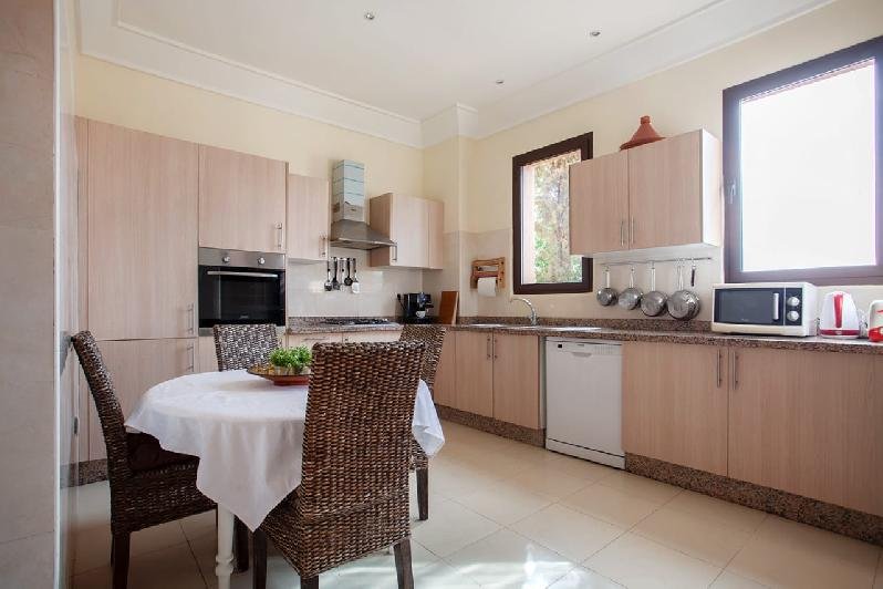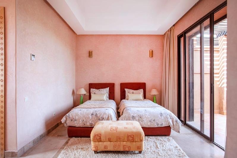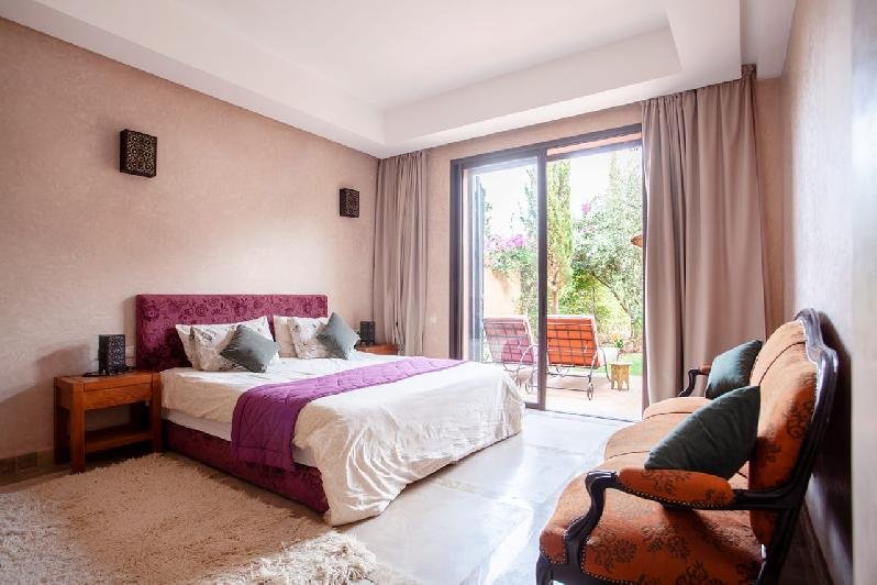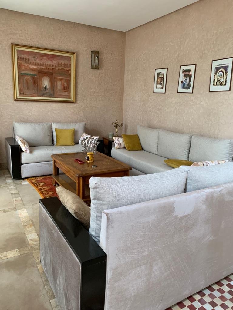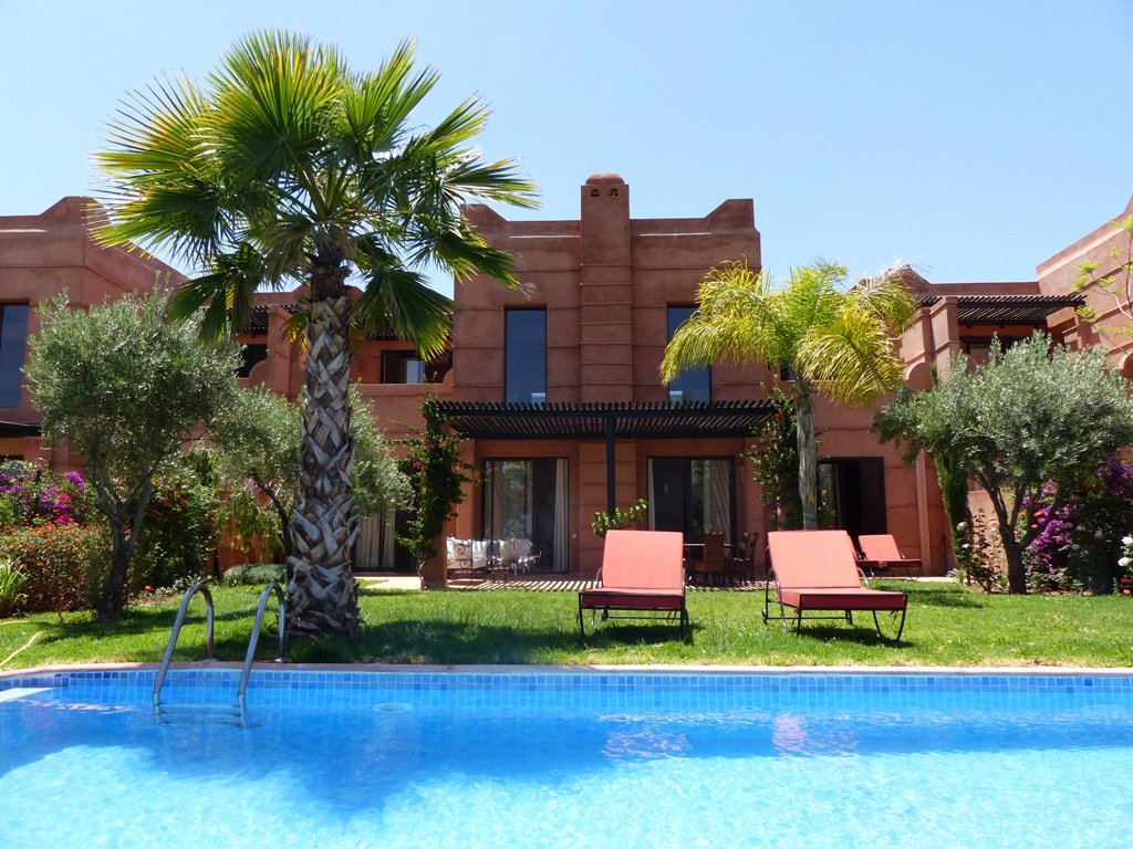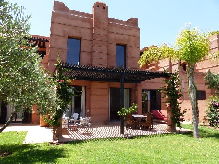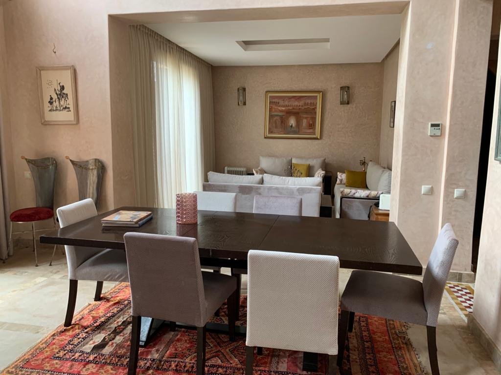 Superbe Villa à louer d'une superficie de 565m² dans un complexe résidentiel privé et ultra sécurisé avec jardin, piscine, restaurant et waky. Un emplacement exceptionnel! Vous pourrez vous baigner dans la piscine privative et sans vis à vis entretenue avec soin. Un beau grand jardin arboré offrant une vue imprenable; la splendide villa à un toit terrasse au dernier étage pour se relaxer et se bronzer . Elle se compose de 2 niveaux : RDC et Etage au Rez-de-chaussée, à l'entrée on trouve un salon séjour moderne donnant accès au jardin, une cuisine entièrement aménagée et équipée de tout l’électroménager et vaisselle nécessaire., 1 SDB, 1 chambre et un hammam marocain à l'étage : un petit hall aménagé et meublé, 3 grandes chambres ( dont une avec balcon ) , 2 SDB et un toit terrasse Opportunité à ne pas rater