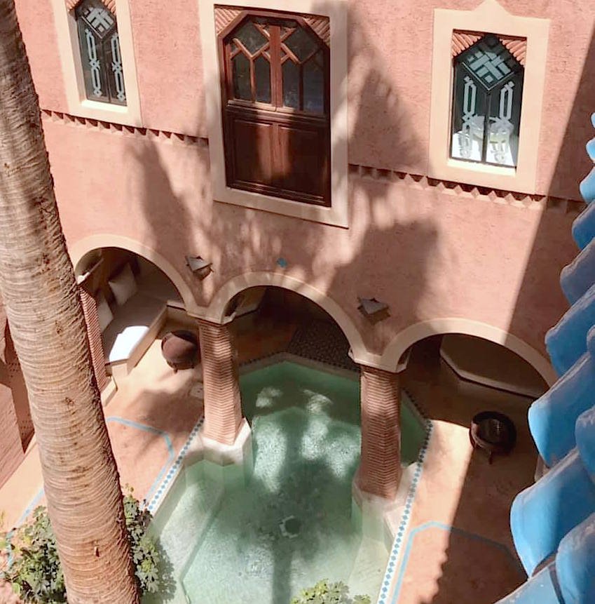 Authentique Riad de style andalou-berbère, très bien situé à quelques pas de Riad Al Bacha et du musé des confluences, exploité en maison d'hôtes, titré, de 164m2 au sol et 400m2 habitables. Le riad se compose de 6 belles et spacieuses chambres avec leur salle de bain + 1 petite piscine + 1 grand patio + 2 salons dont 1 avec cheminée + 1 salle à manger + 1 cuisine + 1 bureau + 1 hammam + 1 Wc et douche invités + 1 espace lingerie + 1 petite remise. Il offre 2 terrasses, dont une avec une vue à 360 degrés sur la médina de Marrakech. Riad régulièrement entretenu depuis sa création et rénové ces derniers mois pour une ambiance berbère unique, à l’esprit Kasbah de l’Atlas. Accès facile en voiture et à pied depuis la place Riad Laarouss. Le quartier est en pleine rénovation des façades et bouge de plus en plus grâce à l’installation de nouvelles boutiques et restaurants. Il dessert très facilement et rapidement les souks, les restaurants et les lieux touristiques principaux (Majorelle, Koutoubia, Palais, Musées …)