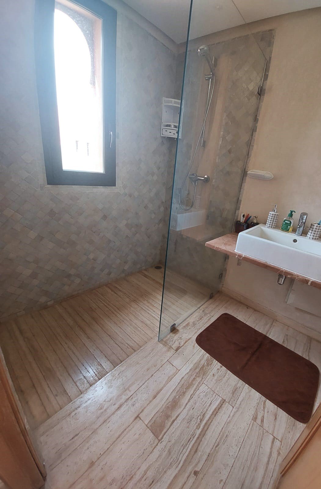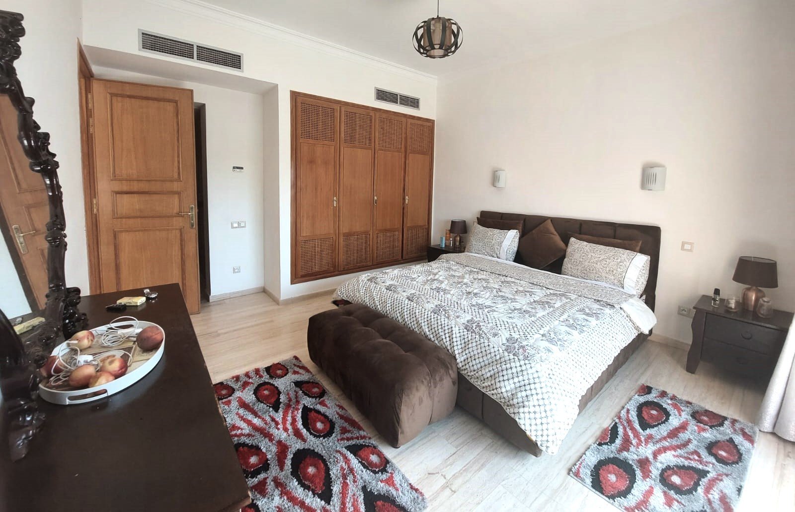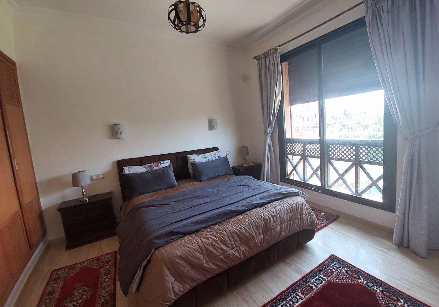 Très Jolie Villa Neuve à Louer Meublée avec Beau Jardin et Piscine Privative situé Dans Une Résidence Sécurisée sur la Route de Fes 12 KM de Centre de Marrakech ;Elle Se Compose de 4 Chambres 2 Salon 1 Cuisine équipée 3 SDB Jardin et Piscine