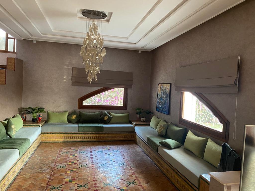 Coup de cœur pour cette Villa style Riad contemporain de charme, hyper spacieuse, d’une superficie totale de 920m² dont 650m² habitable. L’élégance est au RDV avec une haute finition, style de construction unique combine le moderne et le traditionnel avec jardin, parking, une grande piscine et une vue très dégagée et agréable. Elle est sur 2 niveaux (RDC +étage) et se compose de : 7 grandes chambres, 2 grands salons, espace bureau, grand dressing, 5 salles de bain, cuisine bien équipée, une terrasse contenant espace buanderie et une cheminée