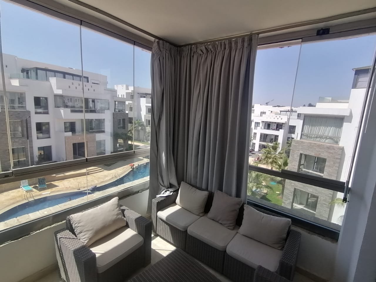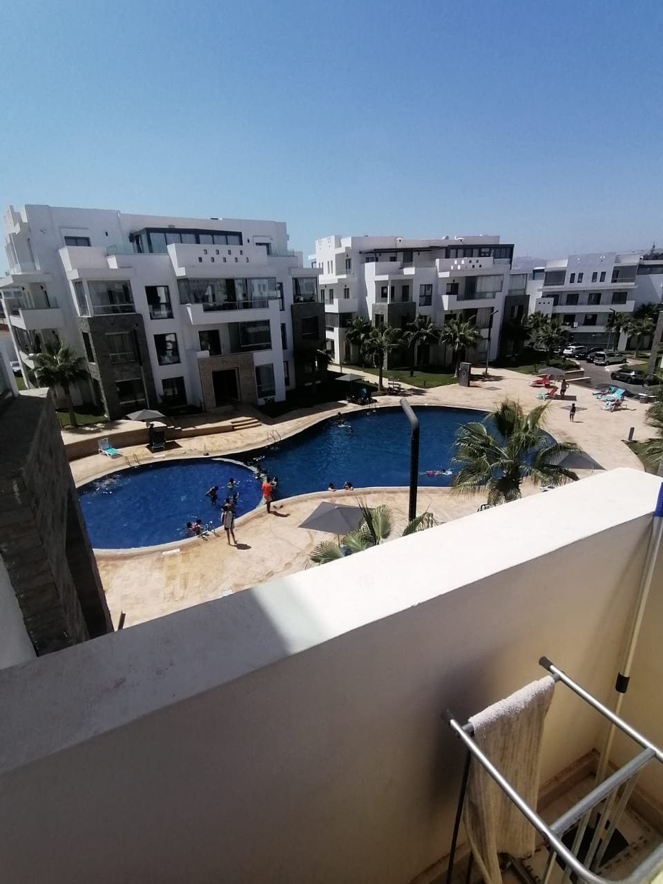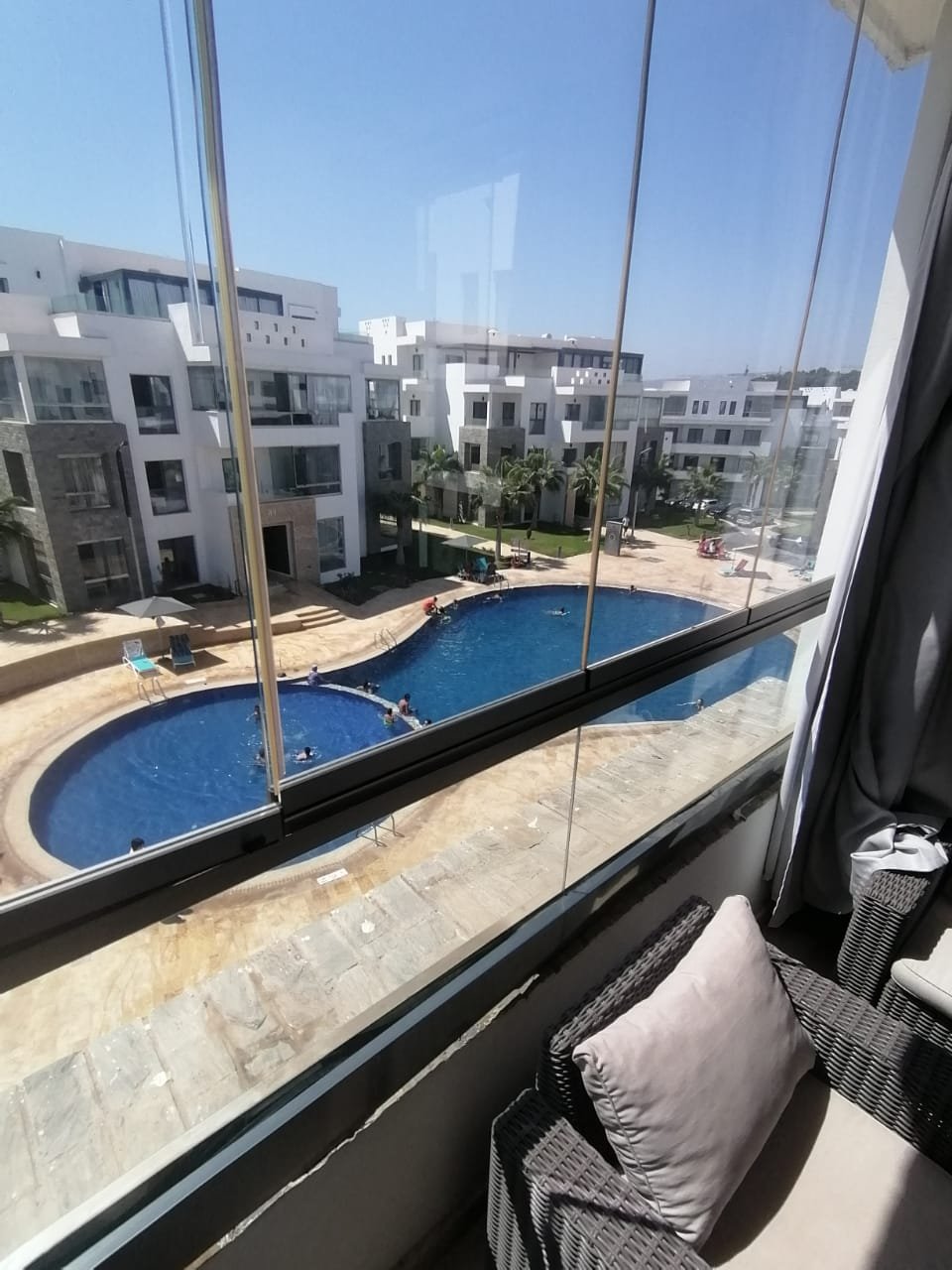 Jolie appartement meublé à louer pour longue durée dans une résidence sécurisée pas loin du centre ville, avec une vue sur piscine L’appartement est situé au 2ème étage, sur 2 façades, moderne, propre, bien entretenu, ensoleillé et éclairé Il se compose de deux chambres, deux salles de bain ,deux balcons vue sur piscine et un salon ouvert sur une cuisine