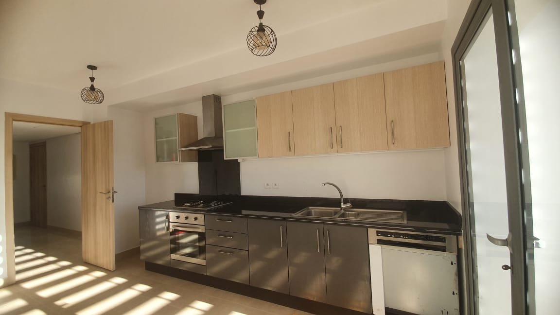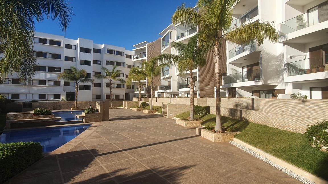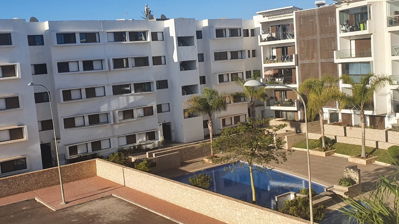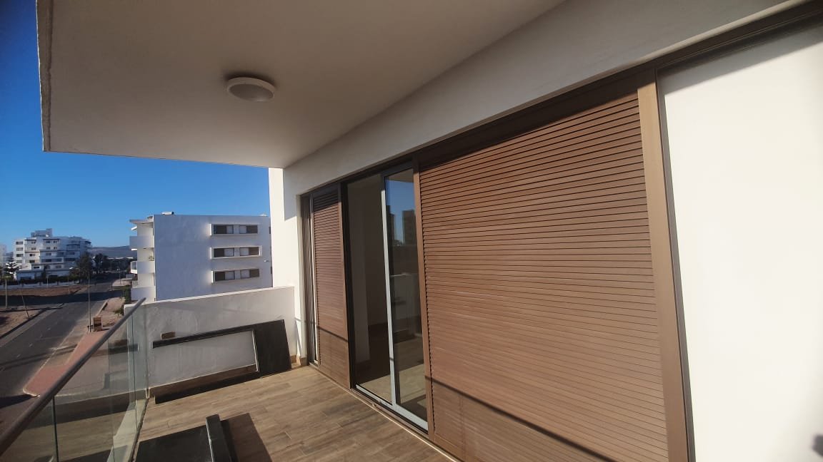 Ce joli appartement moderne est situé dans une résidence haut standing avec piscine, sécurisée et pas loin de la mer. Il est en excellent état avec une finition de haute qualité, ensoleillé, propre et bien entretenu. L’appartement se compose de 2 chambres dont une avec petit placard, un salon, une grande cuisine, SDB et WC invités, balcon et une très belle terrasse avec vue sur mer Il est à louer vide ou meublé