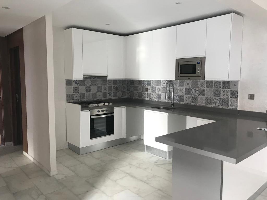 - Bel Appartement tout neuf moderne de 2 chambres avec une petite terrasse situé au quartier camp el ghoul dans un immeuble tout neuf proche de lycée Victor Hugo et à 20 min de la place jamaa lfena et mosquée koutobia avec ascenseur et place parking au sous sol à Marrakech l'appartement est composé de : - 2 chambres à coucher ( dont une parentale avec salle de bain privée ) - salon - cuisine americaine semi équipée - 2 salles de bain ( 1 communicante et deuxieme privée pour la chambre des parents ) - 75 m² - 2eme etage - petite terrasse - Ascenseur - Place parking