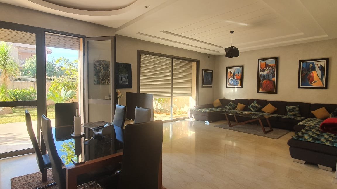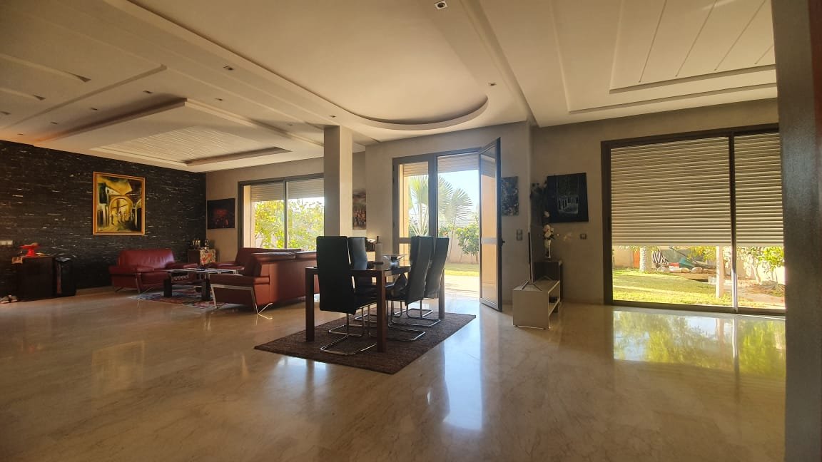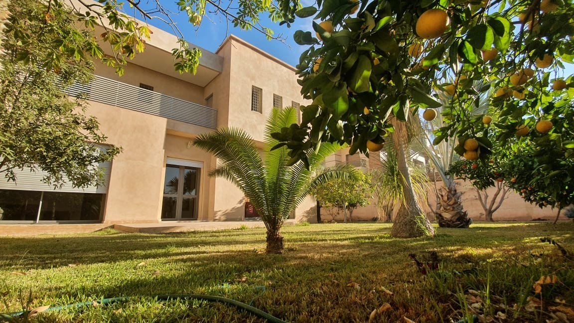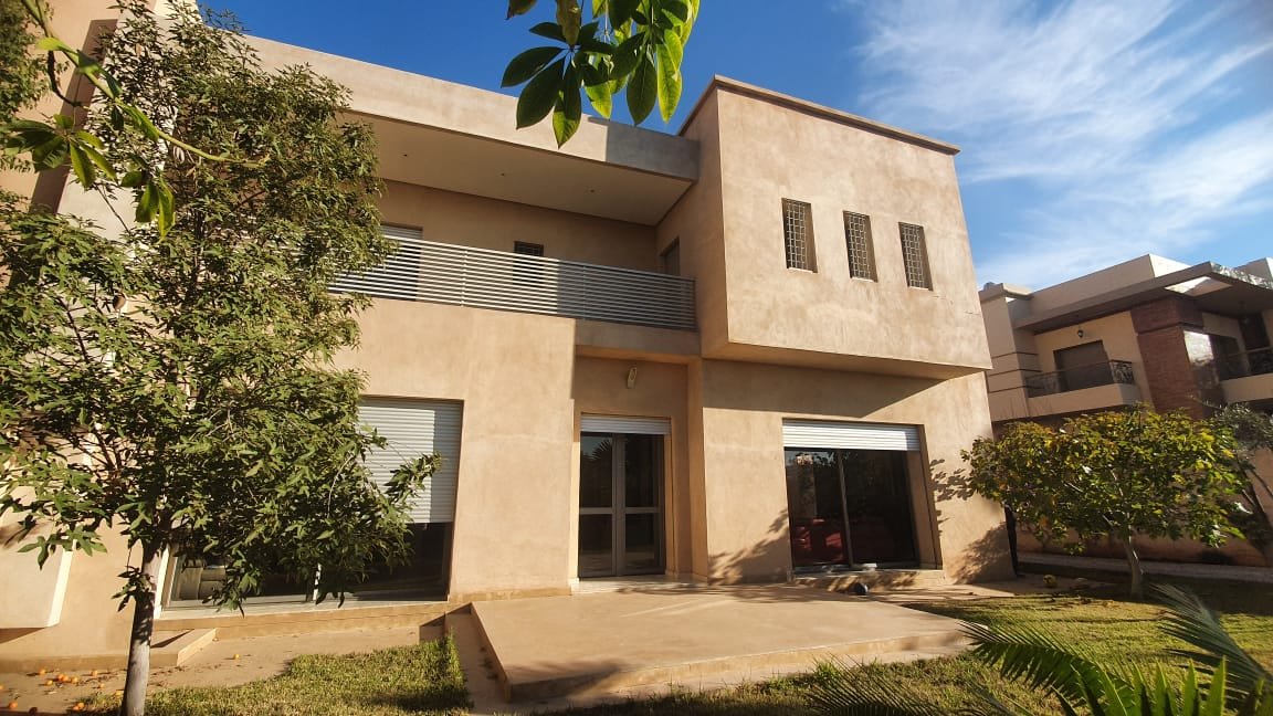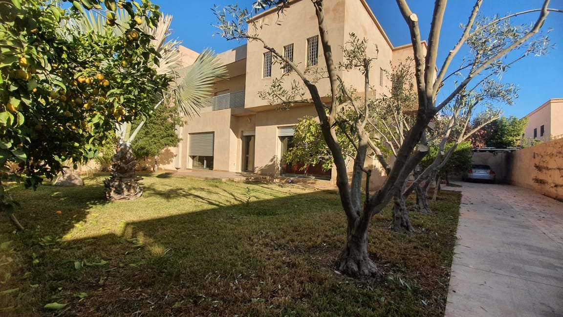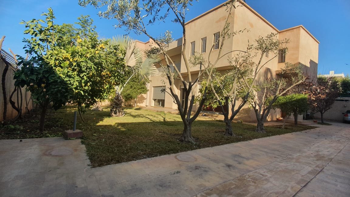 Nous vous offrons en location longue durée, une superbe villa d'une superficie totale de 630m² avec 380m² habitable, construction neuve et finition haut de gamme, à louer vide ou meublée très bien située au Portes de Marrakech ( proche de Targa ) et du centre commercial Carrefour .Elle se compose au rez-de-chaussée d'un salon Marocain, un salon européen, 1 séjour, une grande cuisine et une toilette invités. *A l'étage, contient une suite parentale de 45m² avec sa salle de bain et 2 dressings, 3 chambres dont une avec terrasse et une 2ème SDB commune; *Au sous-sol de 90 m², avec un home-cinéma, une grande chambre et 2 espaces de stockage. Plus un Hammam beldi ; La villa est entourée d'un jardin de plus de 470 m² avec un puit et son installation. Pas de piscine actuellement, mais plan autorisé pour une piscine, donc possibilité de construire une piscine si souhaité dans un délais de 1 mois. Construction antisismique et isolation thermique. Loyer vide: 16.000 dh