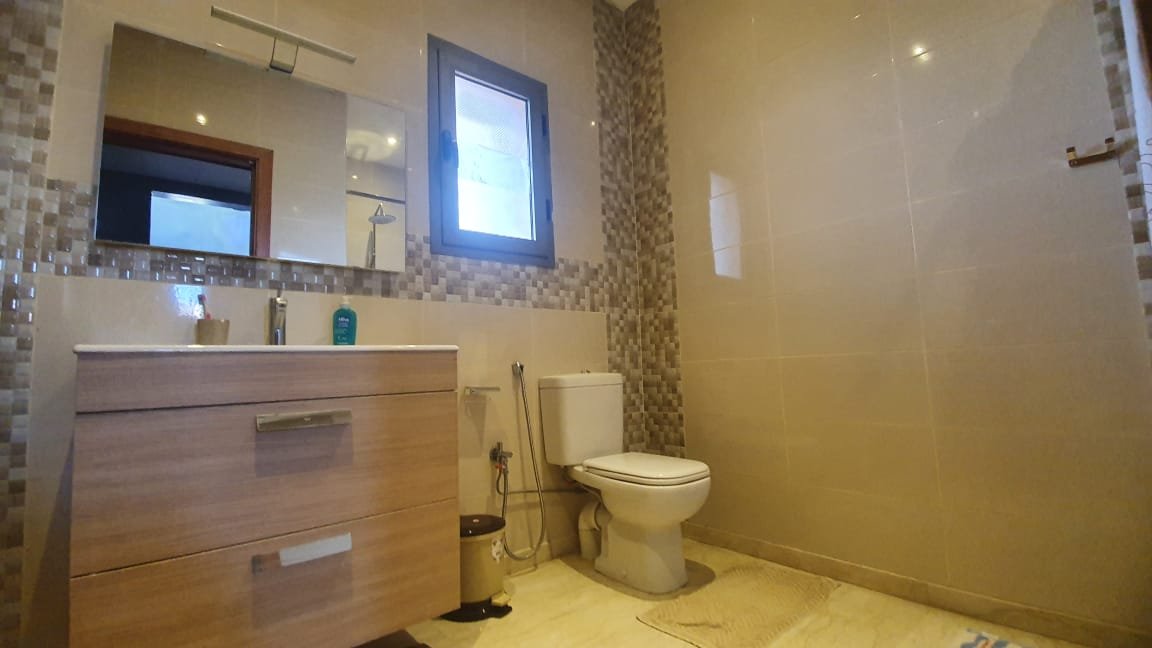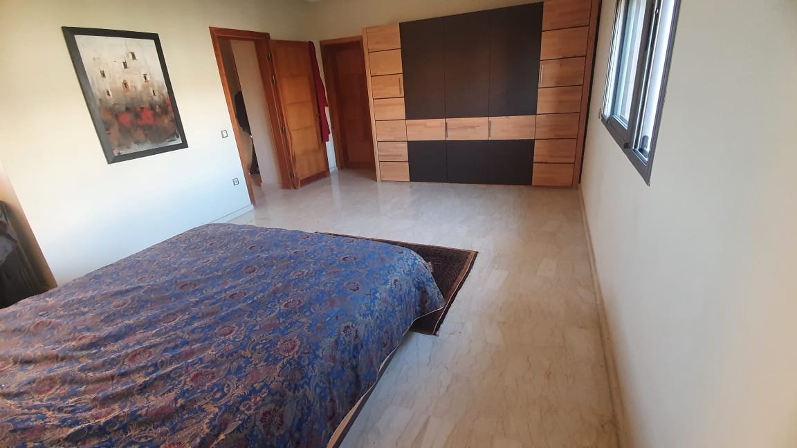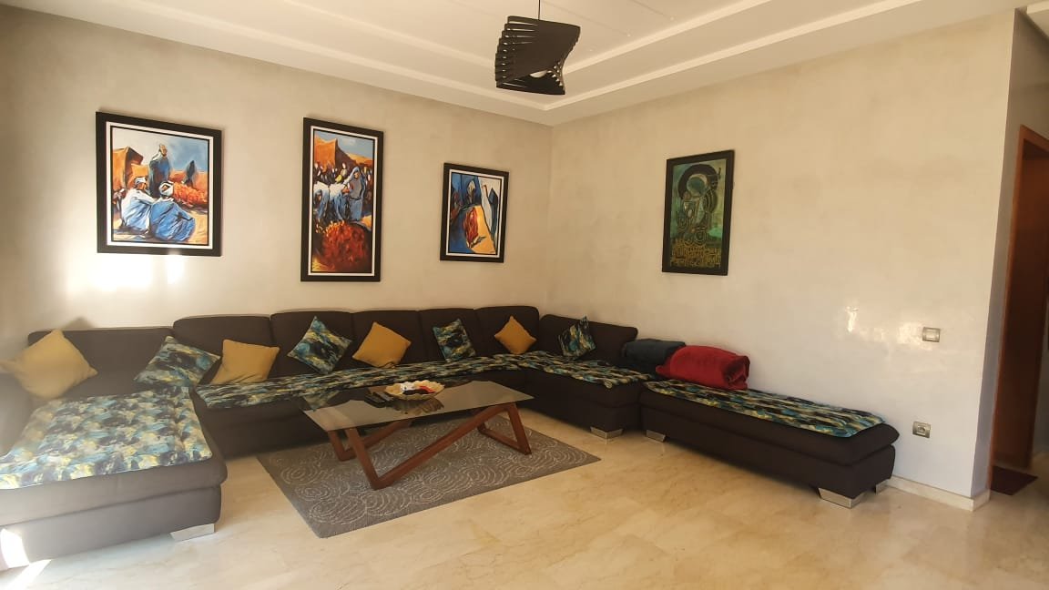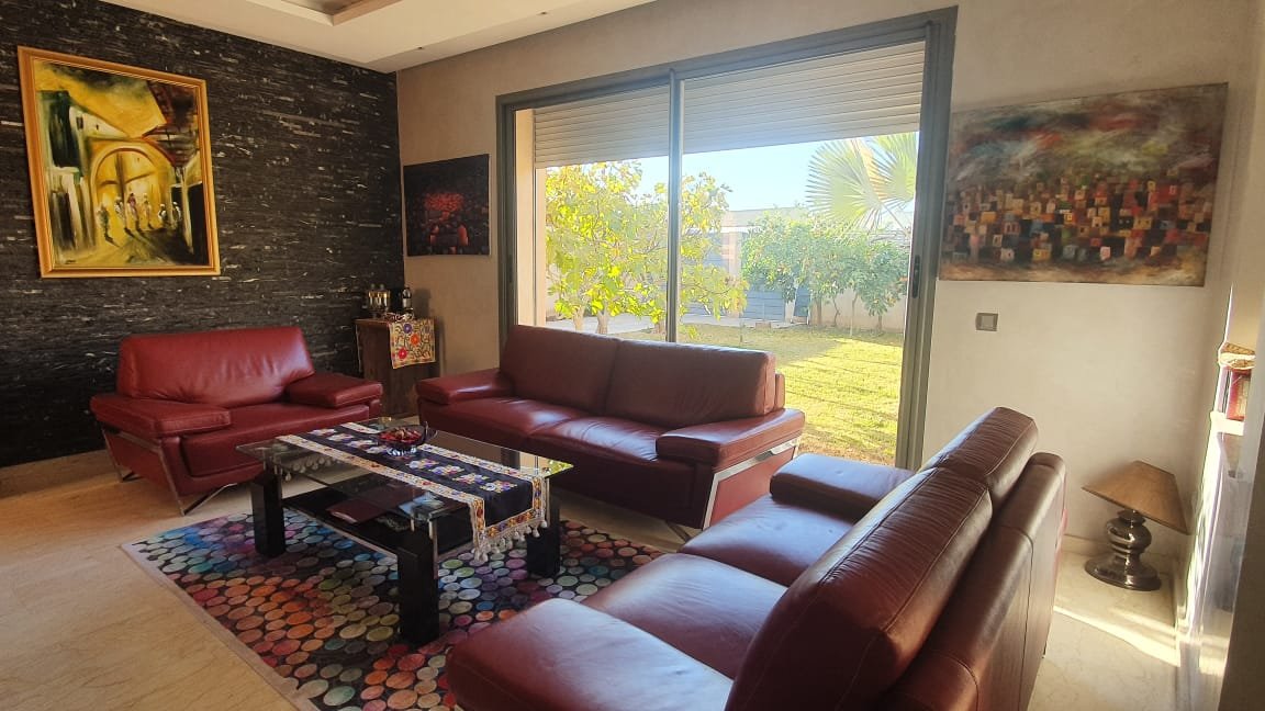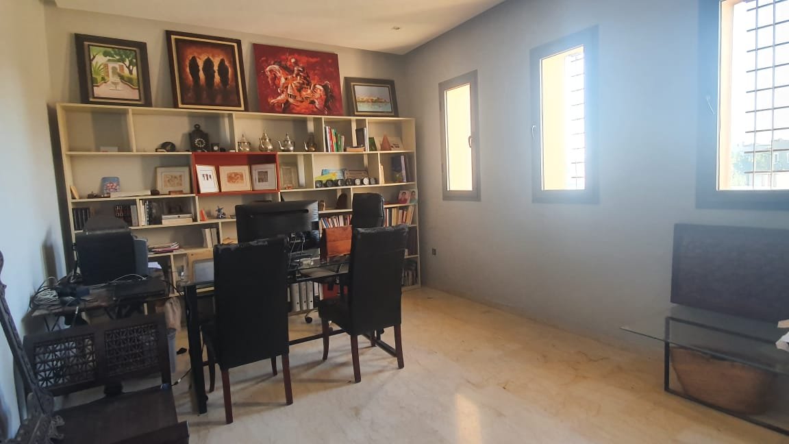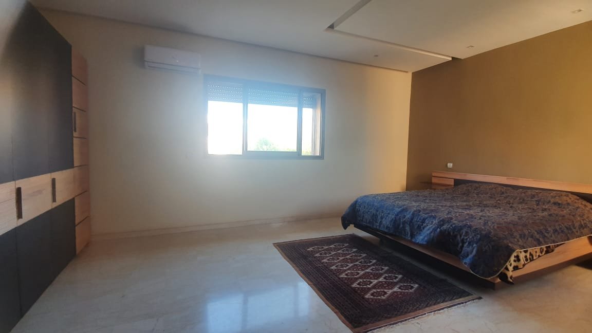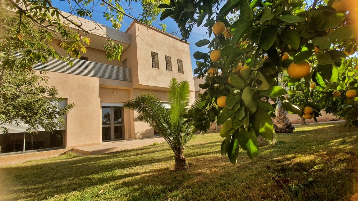 Nous vous offrons en location longue durée, une superbe villa d'une superficie totale de 630m² avec 380m² habitable, construction neuve et finition haut de gamme, à louer vide ou meublée très bien située au Portes de Marrakech ( proche de Targa ) et du centre commercial Carrefour .Elle se compose au rez-de-chaussée d'un salon Marocain, un salon européen, 1 séjour, une grande cuisine et une toilette invités. *A l'étage, contient une suite parentale de 45m² avec sa salle de bain et 2 dressings, 3 chambres dont une avec terrasse et une 2ème SDB commune; *Au sous-sol de 90 m², avec un home-cinéma, une grande chambre et 2 espaces de stockage. Plus un Hammam beldi ; La villa est entourée d'un jardin de plus de 470 m² avec un puit et son installation. Pas de piscine actuellement, mais plan autorisé pour une piscine, donc possibilité de construire une piscine si souhaité dans un délais de 1 mois. Construction antisismique et isolation thermique. Loyer vide: 16.000 dh