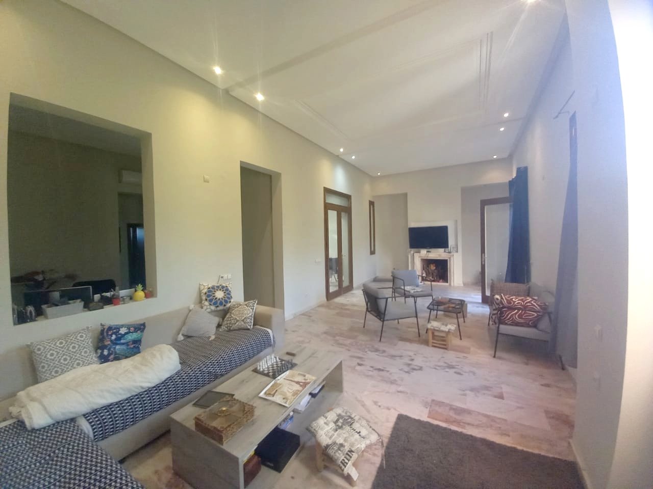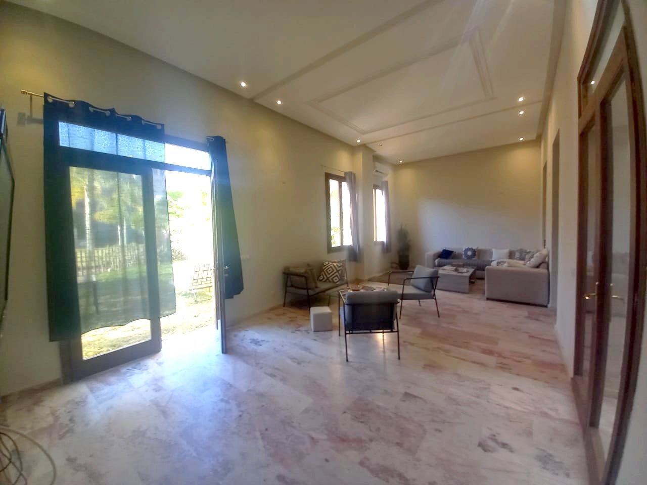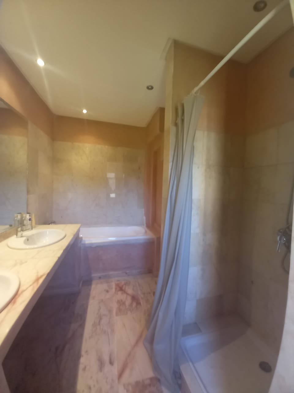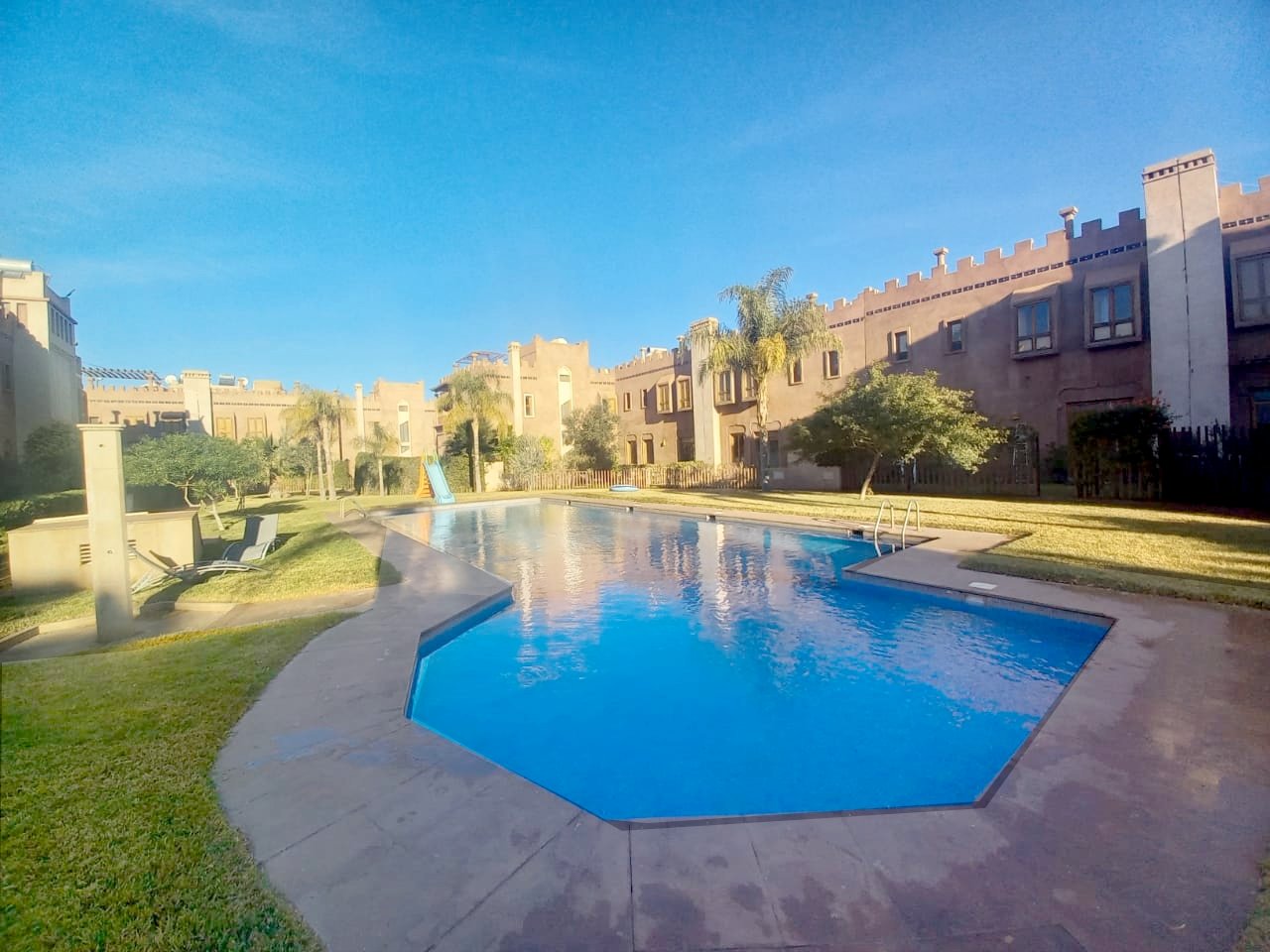 - Jolie Villa à louer vide de 3 suites avec cheminée, jardin privé dans une résidence avec piscine collective à Cherifia composée de : Au Rez de chaussée : - Double Salons avec coin cheminée, - salle à manger - Wc d'invités - chambre idéal pour un débarras - cuisine - jardin privé à l'étage : - 3 suites ( chaque chambre avec sa salle de bain privée ) + Terrasse au deuxieme niveau . LOYER : 11.000 DH hors charges