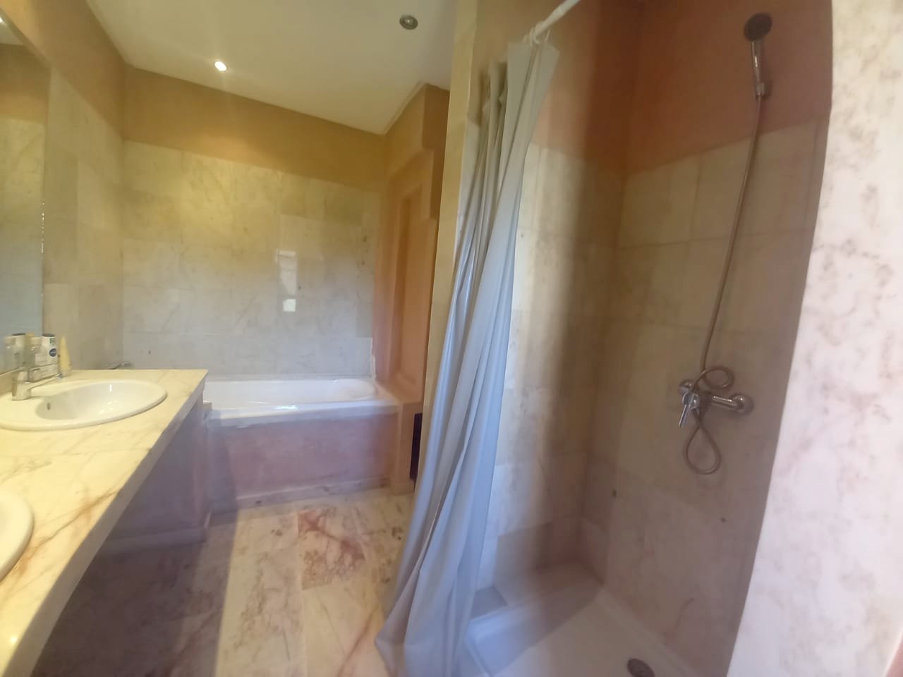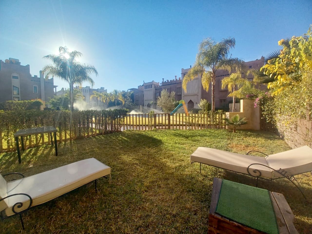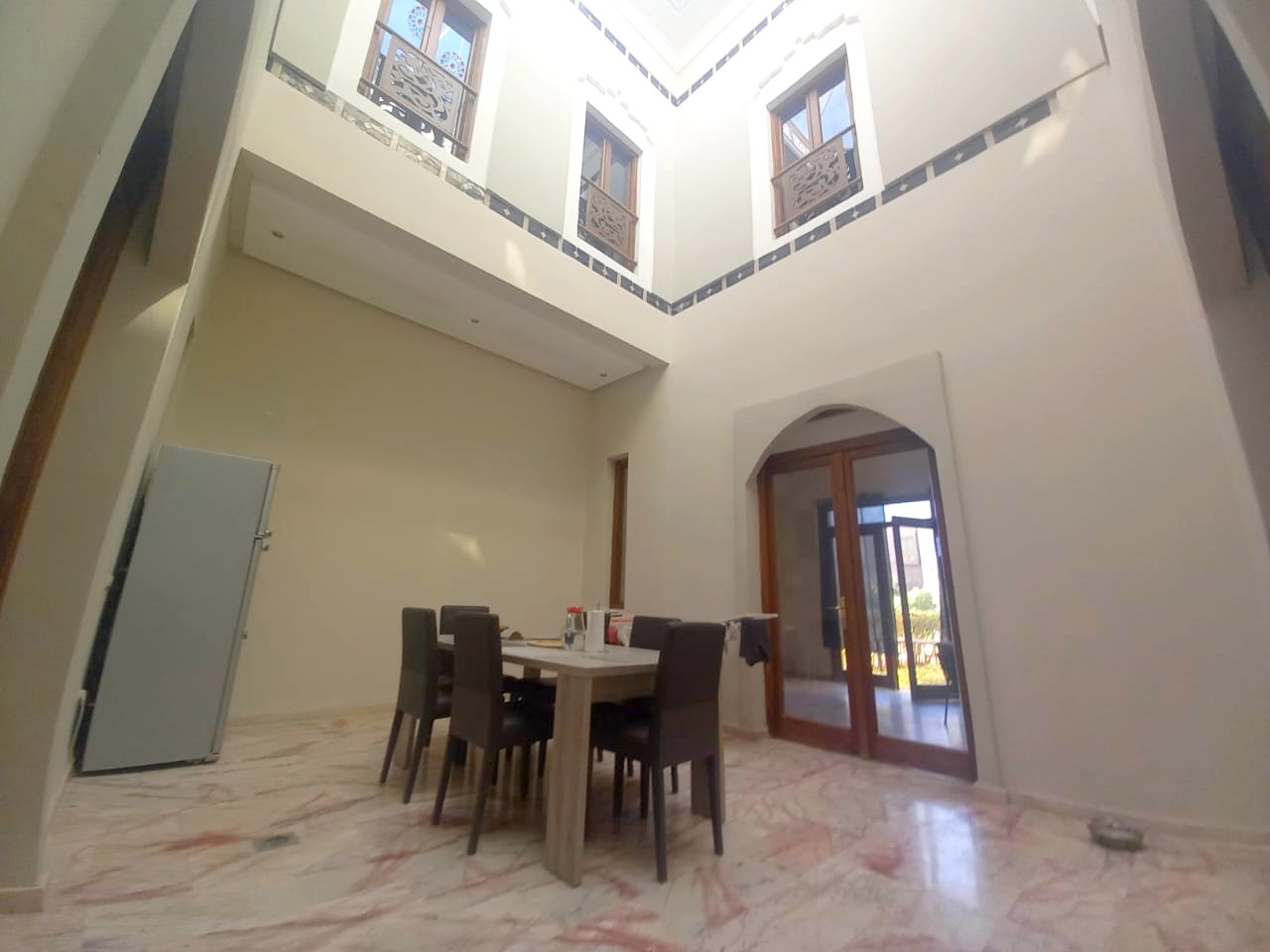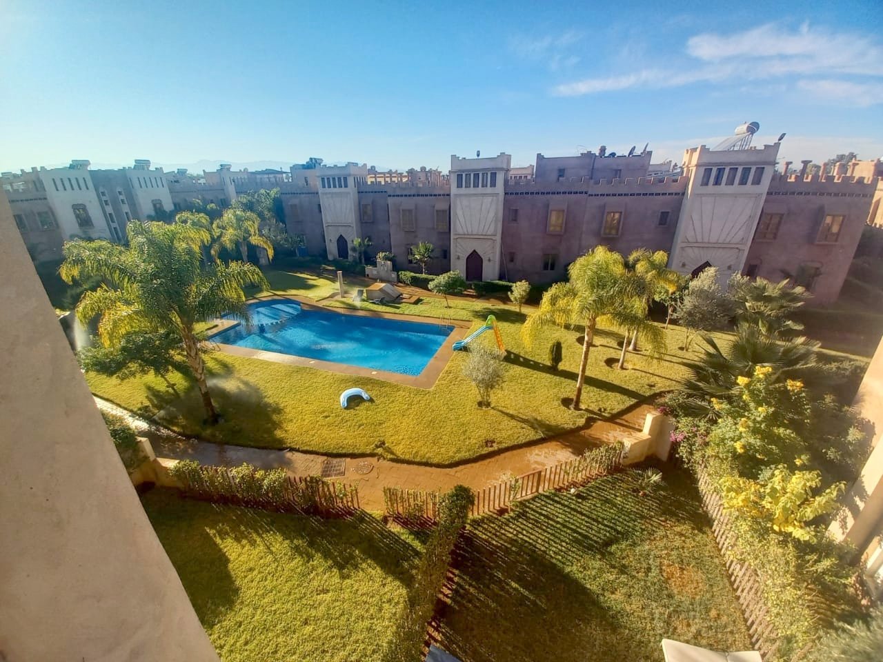 - Jolie Villa à louer vide de 3 suites avec cheminée, jardin privé dans une résidence avec piscine collective à Cherifia composée de : Au Rez de chaussée : - Double Salons avec coin cheminée, - salle à manger - Wc d'invités - chambre idéal pour un débarras - cuisine - jardin privé à l'étage : - 3 suites ( chaque chambre avec sa salle de bain privée ) + Terrasse au deuxieme niveau . LOYER : 11.000 DH hors charges