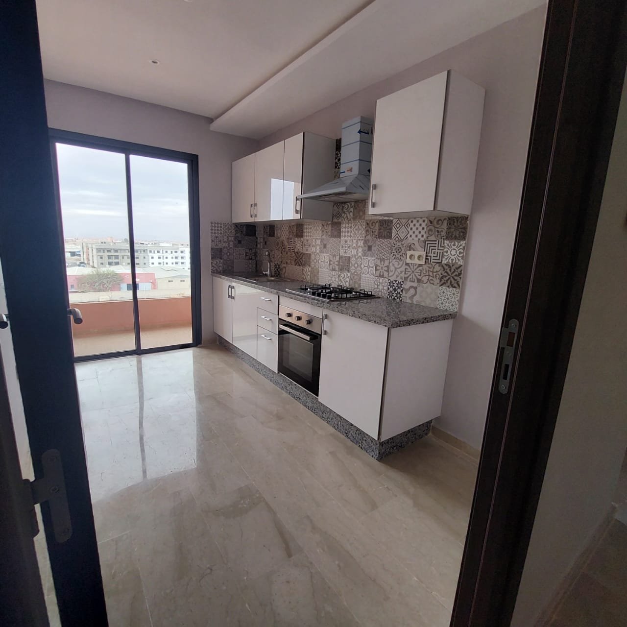 - Bel Appartement tout neuf jamais habité à louer vide de 2 chambres avec terrasse situé dans une réisdence avec piscine collective sur la route de safi - Marrakech L'appartement est composé de : - Salon - 2 chambres à ocucher - 2 salles de bain - 1 cuisine équipée - 5eme etage - Ascenseur - place parking - piscine collective