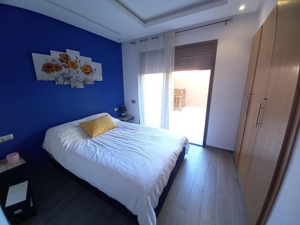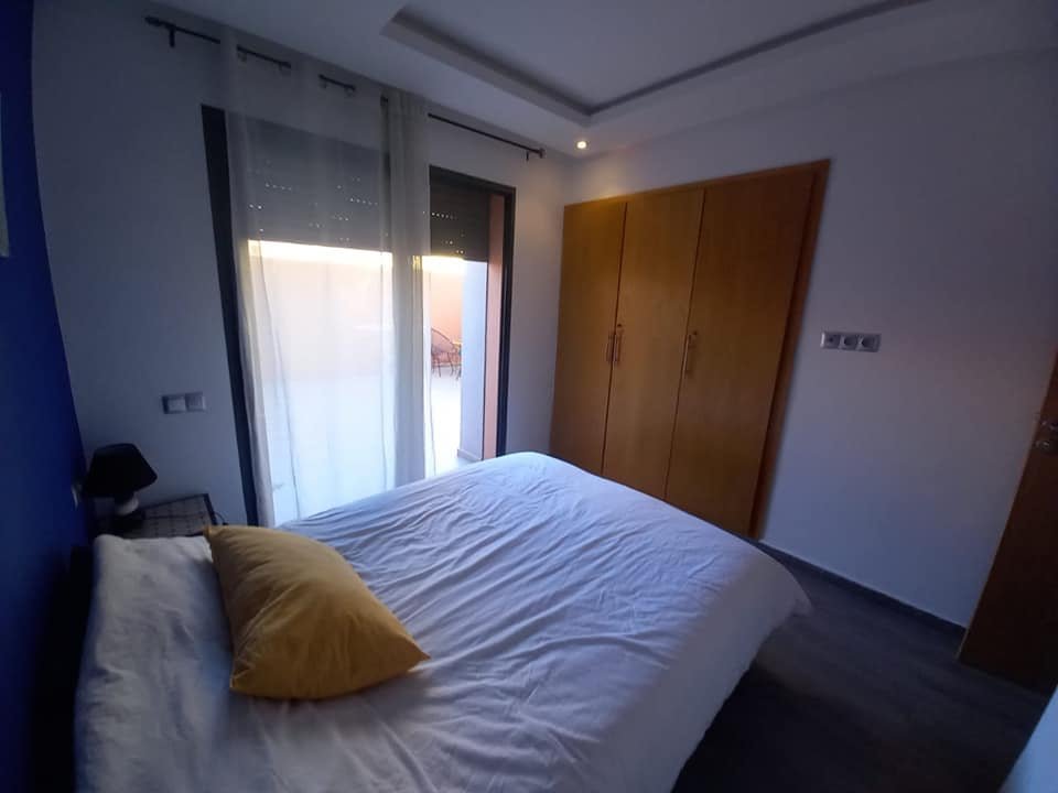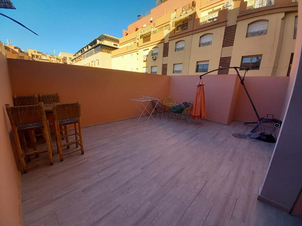 Nous mettons à la location longue durée un joli appartement moderne et bien meublé situé au niveau du 1er étage d'un immeuble de haut standing à gueliz - Marrakech, composé de: - deux chambres à coucher ( chaque chambre avec terrasse privée ) - salon avec coin salle à manger. - Cuisine bien équipée. - Salle de bain. - Climatisation centralisée. - place parking au sous-sol. - Ascenseur - calme et sécurisée.