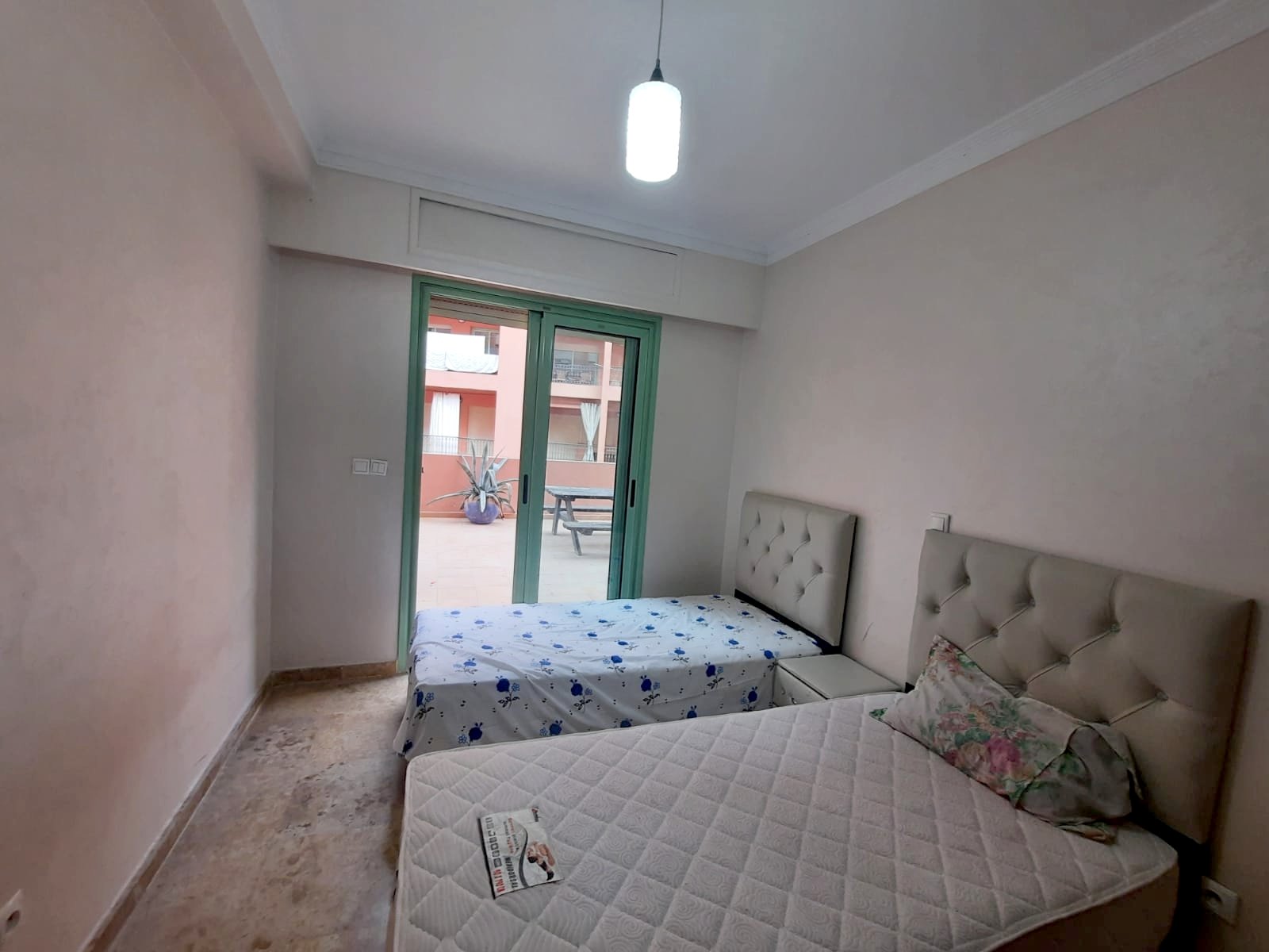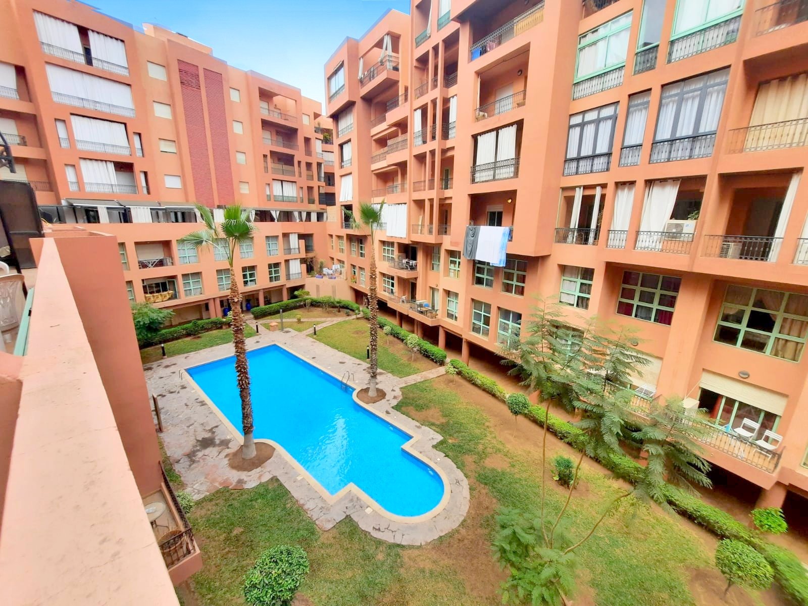 - Joli Appartement à Vendre avec une trés jolie terrasse donnant vue sur la piscine de la résidence au quartier majorelle à Marrakech l'appartement est composée de : - 2 chambres - 2 salles de bain - 1 salon - terrasse de 43 m² - cuisine équipée avec buanderie - 1er etage - Ascenseur - piscine collective - place parking