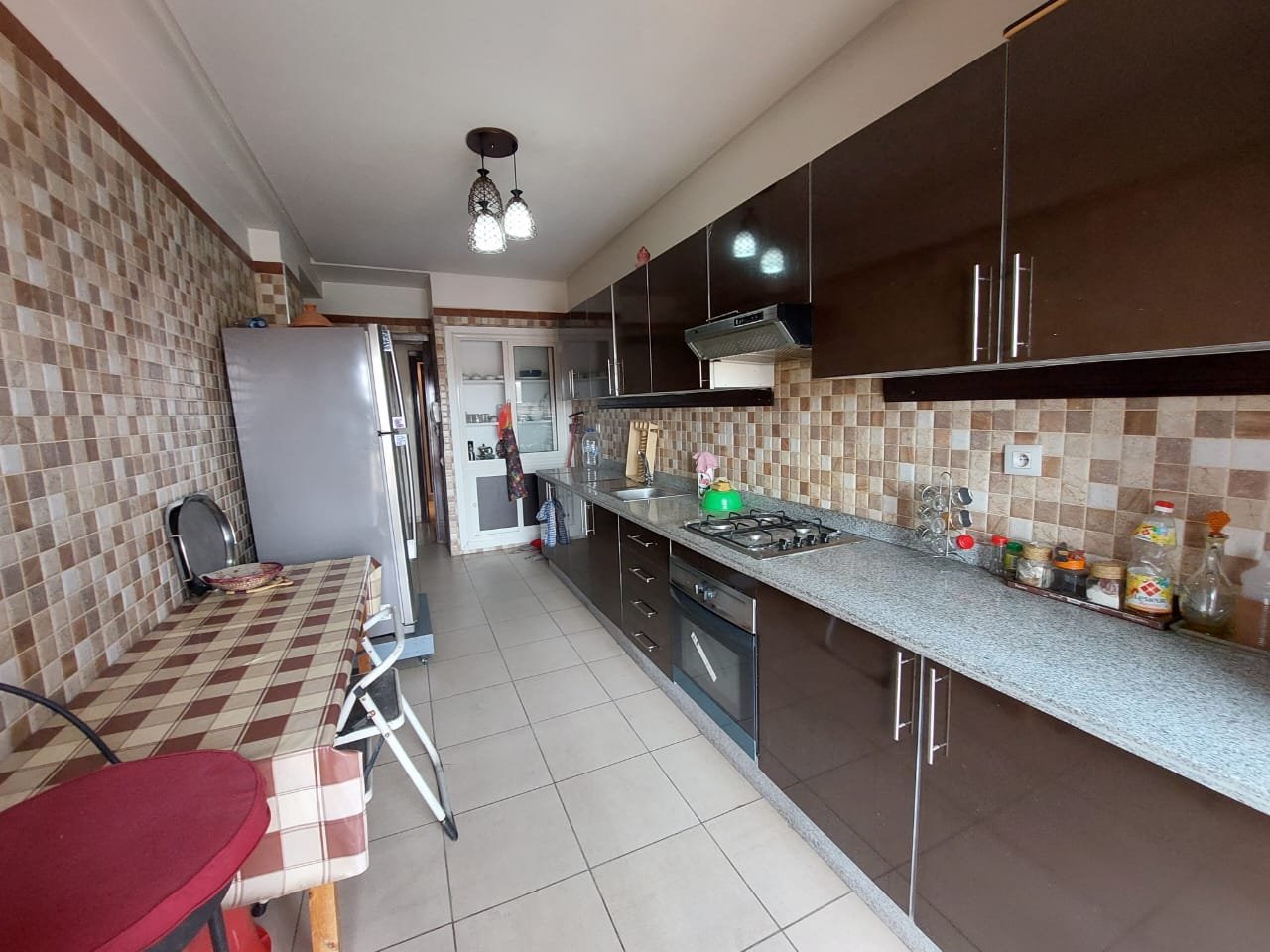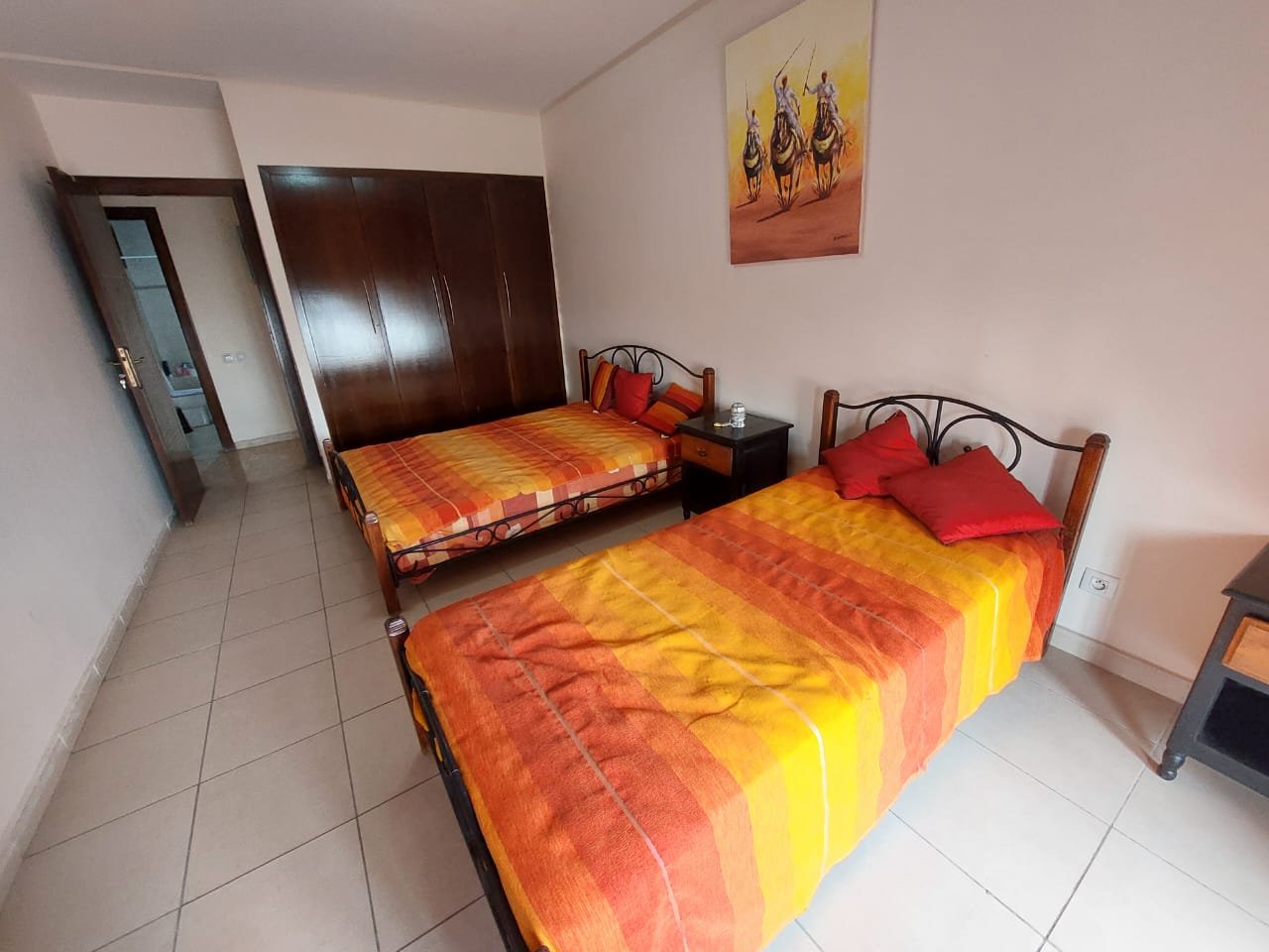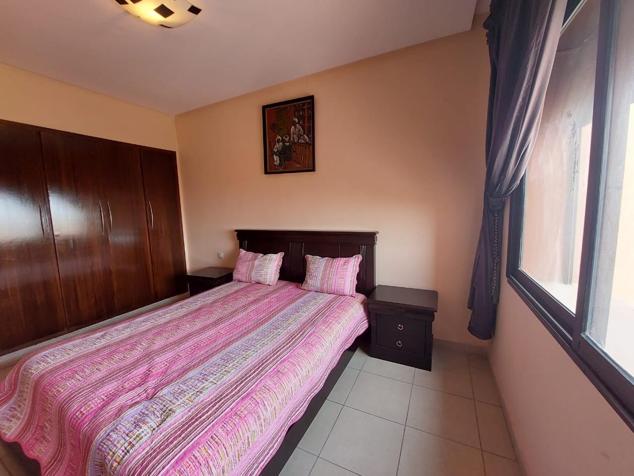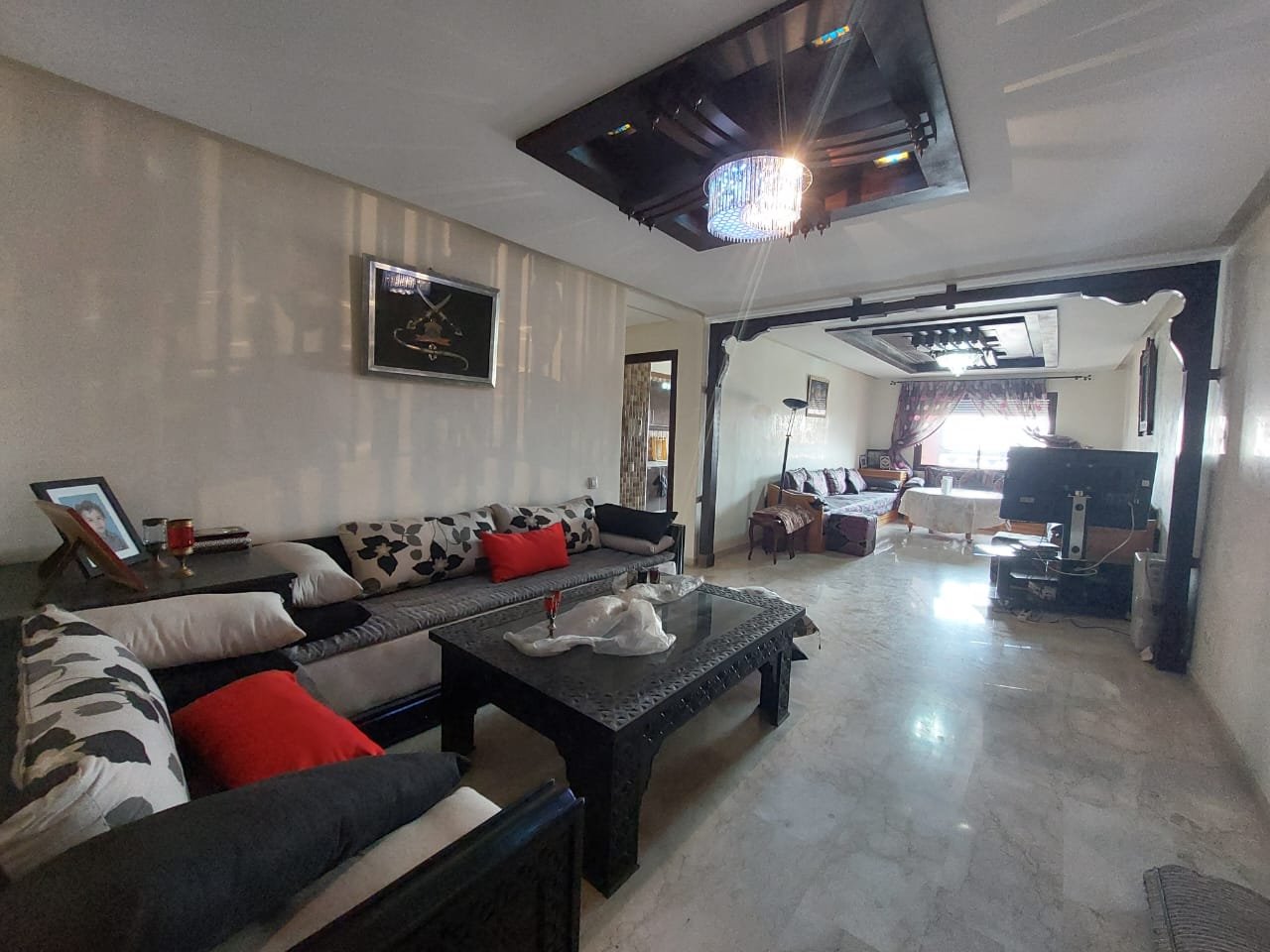 A louer en longue durée, ce spacieux appartement meublé ou semi-meublé sans vis à vis de 126m², un grand balcon sur toute la largeur de l’appartement bien ensoleillé, et sécurisé. Situé au 4 étage, dans un immeuble bien entretenu et sécurisée avec ascenseur et parking sous-terrain, composé de 2 grandes chambres, d'un salon marocain spacieux et d'un salon européen. 2 salles de bains avec toilettes, et une salle de bain attenante à la chambre parentale. la cuisine est bien équipée Possibilité de louer l'appartement semi-meublé (7500 dh) ou de remplacer certains meubles (salon marocain par un salon européen) à 8500 dh charges de syndic incluses.