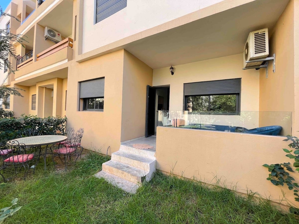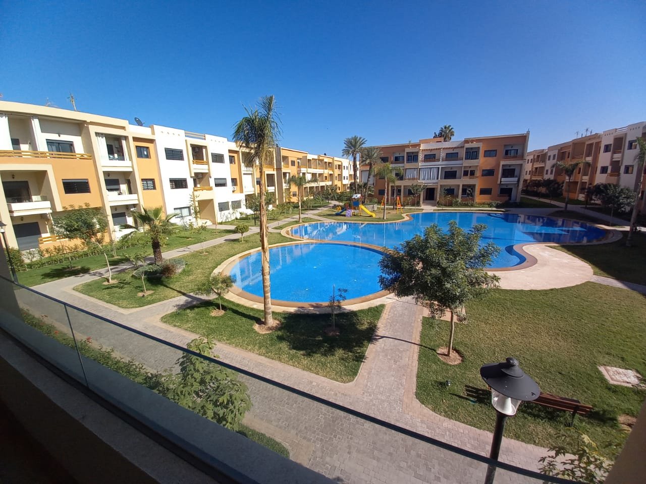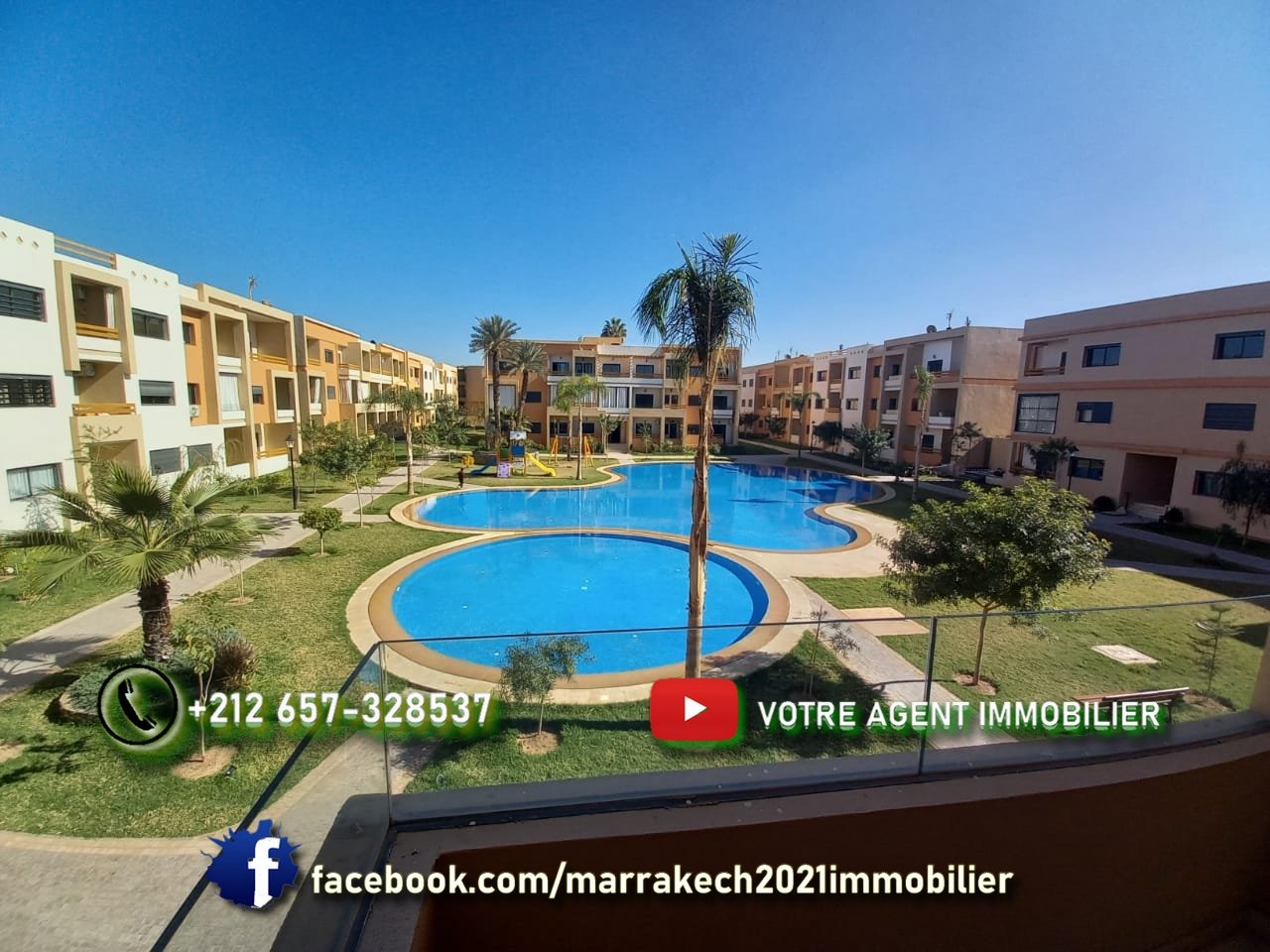 Appartement bien meublé au Rez de jardin ( RDC ) situé dans une résidence avec piscine collective, espaces verts et place parking à Targa . Loyer : 6.500 DH l'appartement est composé de : - 2 chambres à coucher - 1 salon - 1 salle de bain - cuisine équipée avec petite terrasse privée - jardin privé - piscine collective - parc de jeux pour les enfants - place parking - concierge