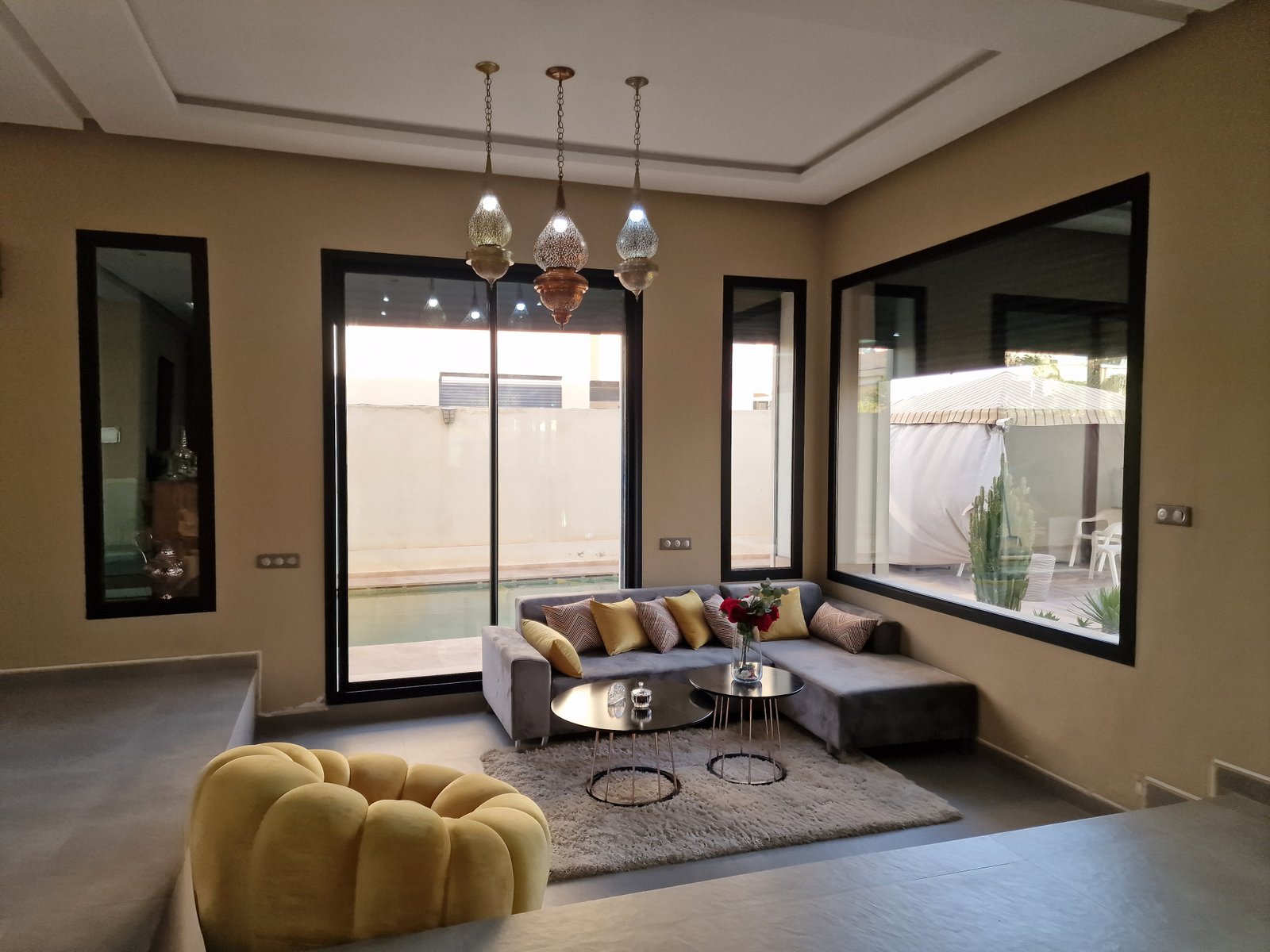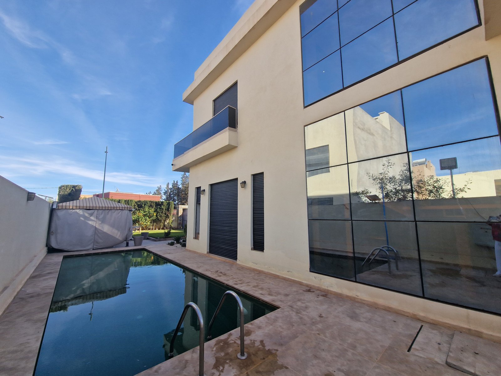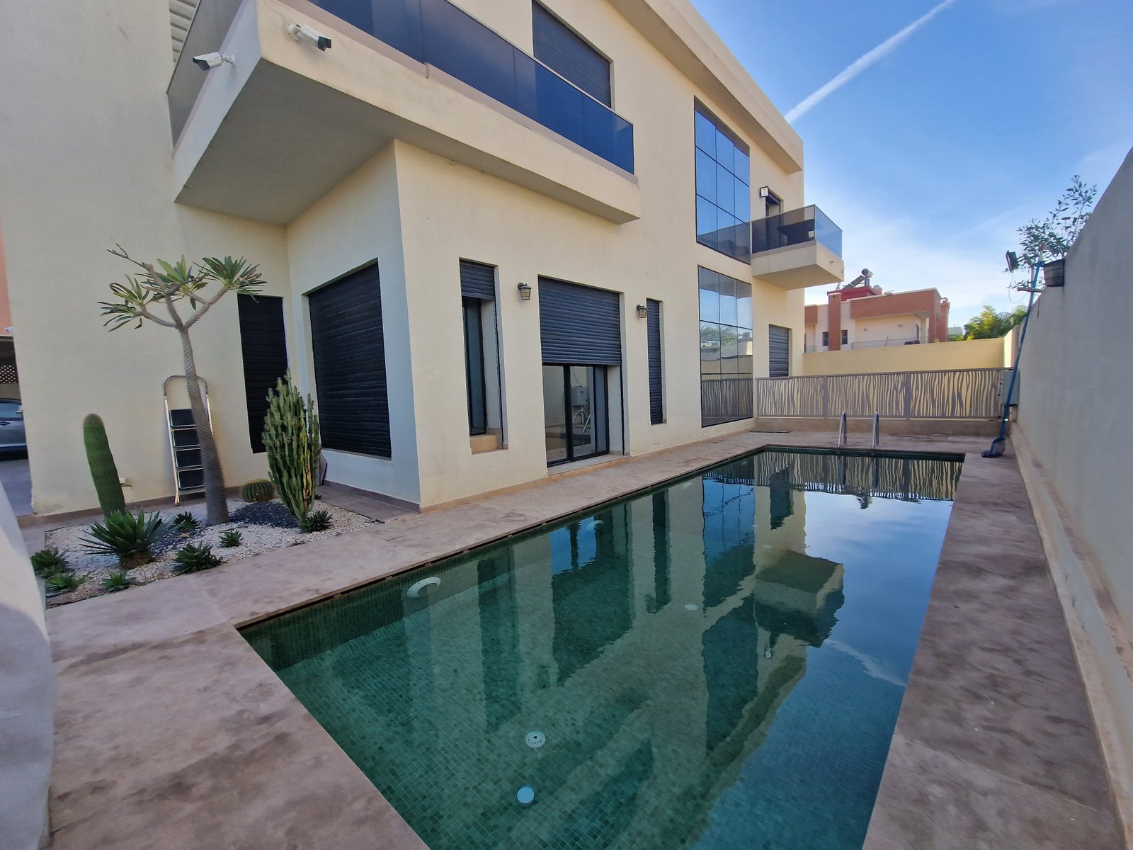 Belle villa très bien agencée idéal pour Usage Commercial ou Résidentiel, à vendre au quartier Targa à 2mn du Carrefour. Construite sur un terrain terrain de 539m² sur 3 Niveaux Descriptif: ** Rdc (161m²) Plusieurs Salons dont un avec cheminée, ouvert sur le jardin et la piscine. ** Au 1er Etage (142m²) 1 suite parentale avec terrasse dressing sdb , jacuzzi, et coin bureau (ou bébé) 2 belles chambres dont une avec balcon, et sdb commune ** Sous-Sol (111m²) Grand cuisine moderne, avec cin salle à manger et un séjour 2 chambres 1 SDB 1 Cour anglaise Matériaux de haut standing Clim réversibles Système énergie solaire Jardin Piscine Finition marbre perlatino / bois de cèdre et allum de très bonne qualité Volets électriques extrudé au RDC Idéal pour Usage Commercial (crêche, clinique, salon de thé ...)ou Résidentiel, Prix de vente: 5.300.000dh Commission Agence : 2.5% HT