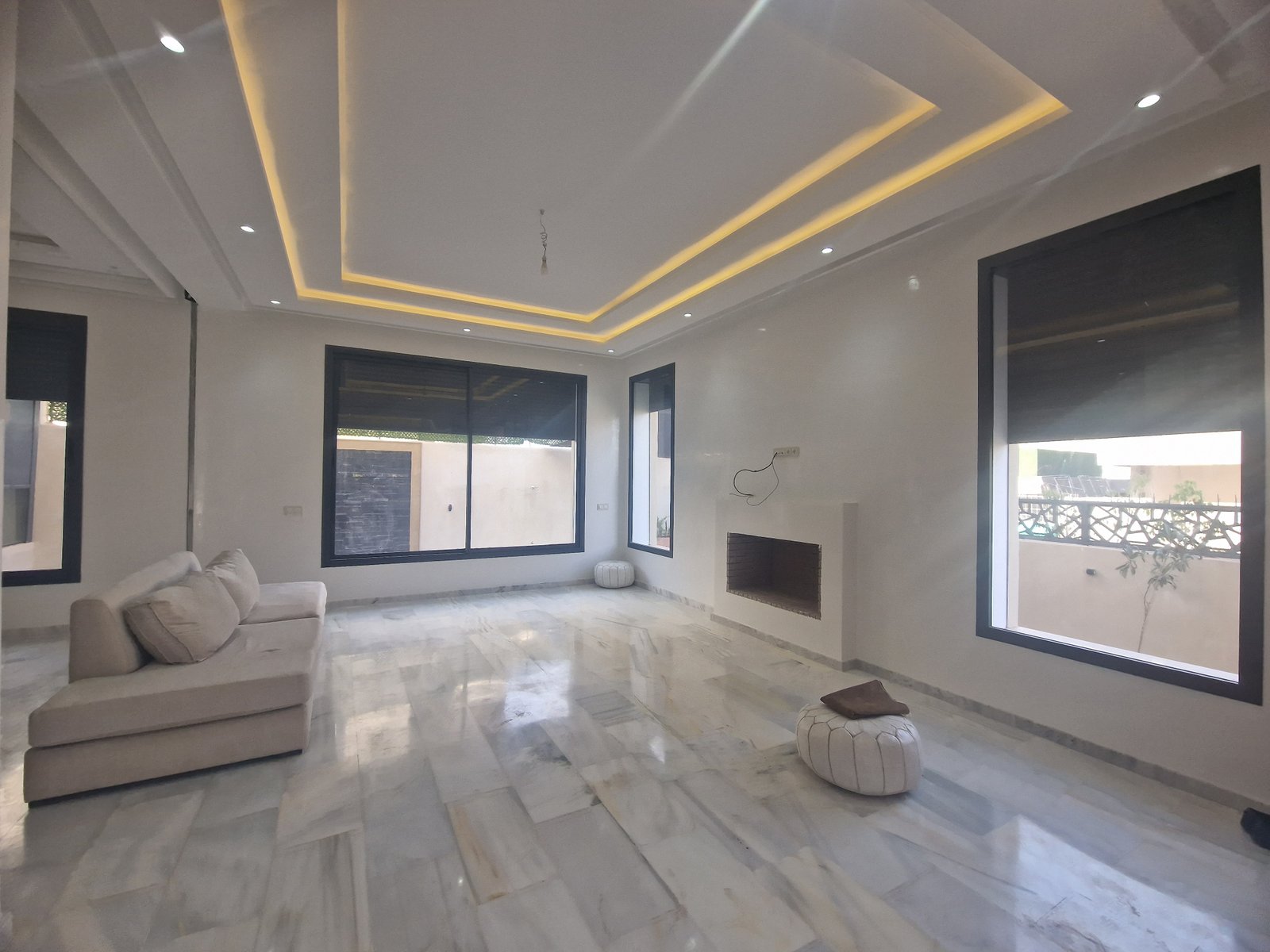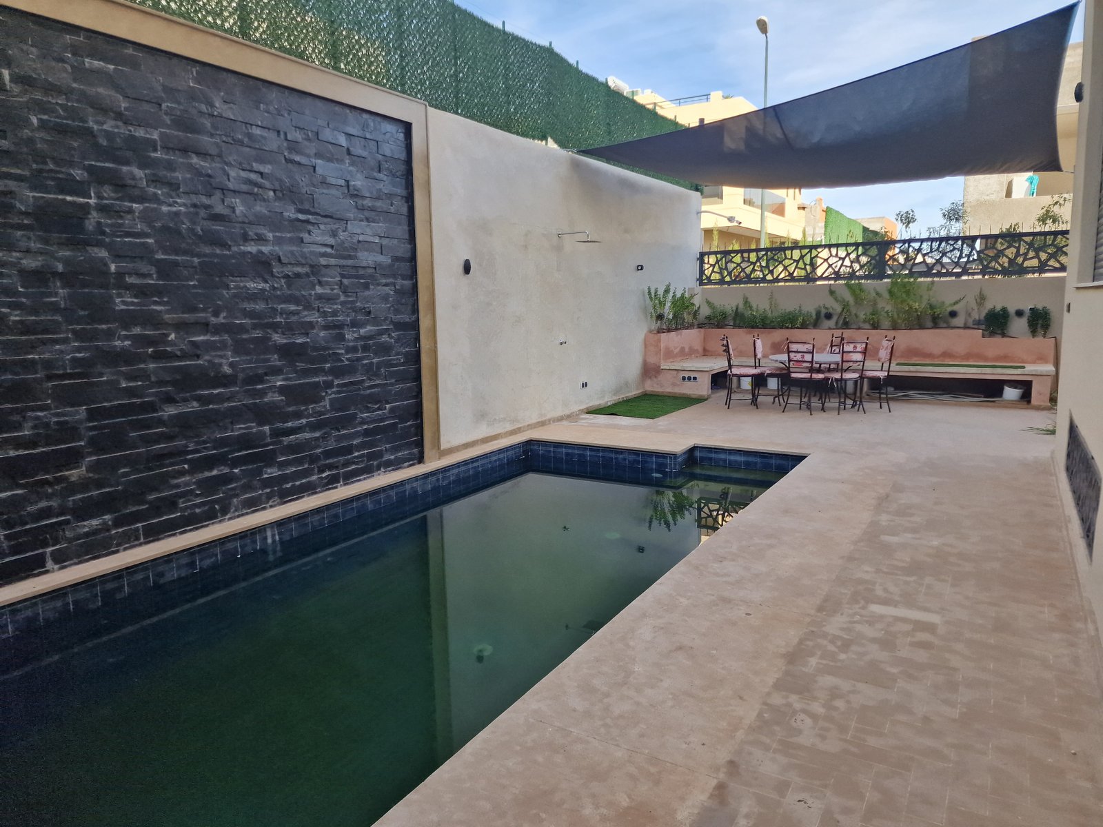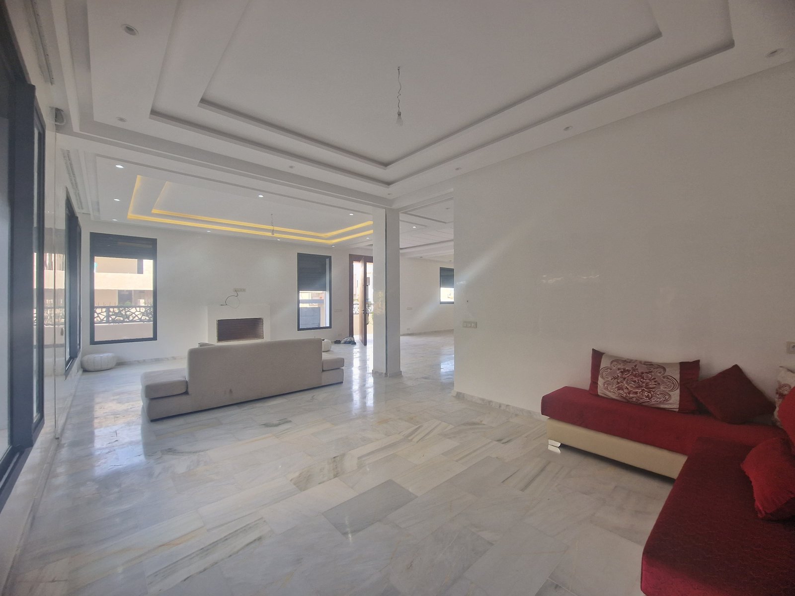 Villa très bien finie construite avec des matériaux de très gaut de gamme. 564m² habitable sur 400m² de terrain. Sur 3 niveaux : Au Rdc: Grand Salon avec cheminée, séjour et coin salle salle à manger avec terrasse donnant sur la piscine. Très belle cuisine spacieuse, moderne et bien agencée. À l'étage : 4 chambres dont une parentale avec sdv privative et dressing. Une 2éme sdb commune (il y a possible d'ajouter des sdb dans chaque chambre). Un hall avec belle baie vitrée pouvant servir de coin télé ou bibliothèque.... Au Sous-sol : une chambre pour le personnel avec sa sdb une autre chambre avec sa sdb, un grand espace pouvant être aménagée en salle de jeux ou autre, un coin cuisine (les installations sont déjà faite) Le Sous-sol est lumineux et pourrait être exploitée en tant qu'apportent indépendant avec sa Propre porte et accès autonome. Au 2éme étage un hammam et sa douche avec espace massage. Une belle terrasse offrant une vue à 180 sur la koutoubia l'Atlas et le quartier autour. Prix sacrifié cause départ : 5.600.000 dh (très légèrement négociable) com agence 2,5%