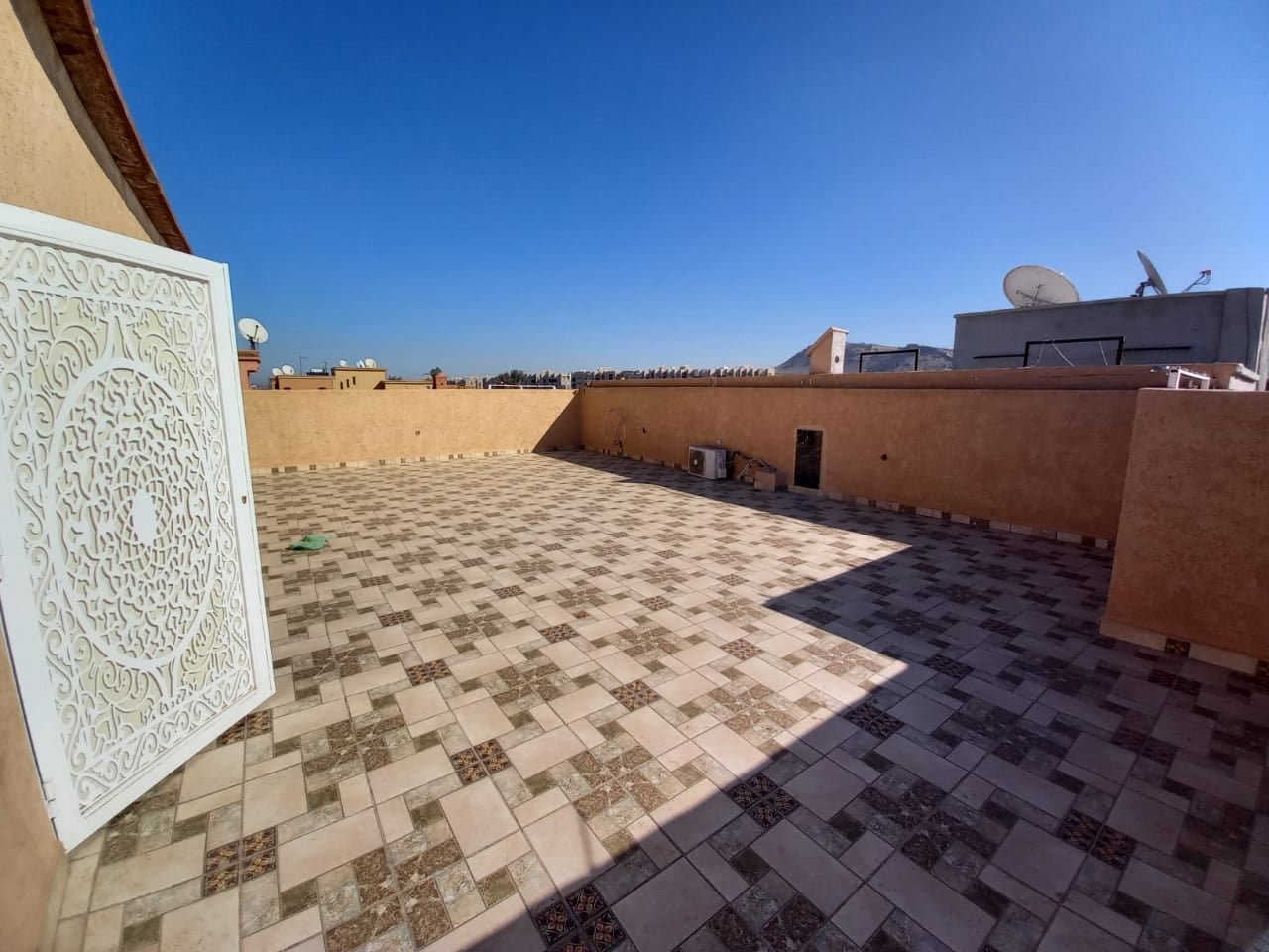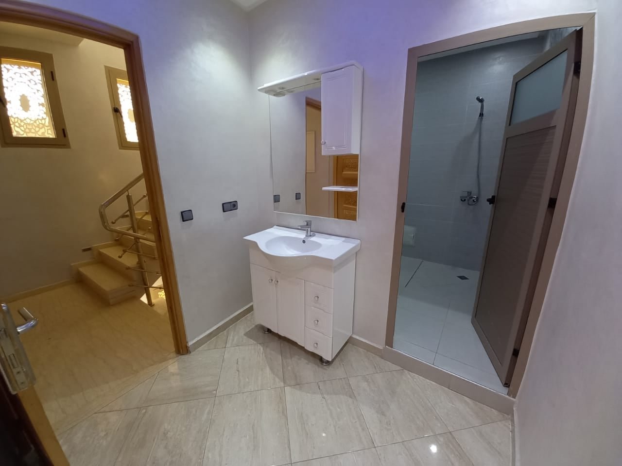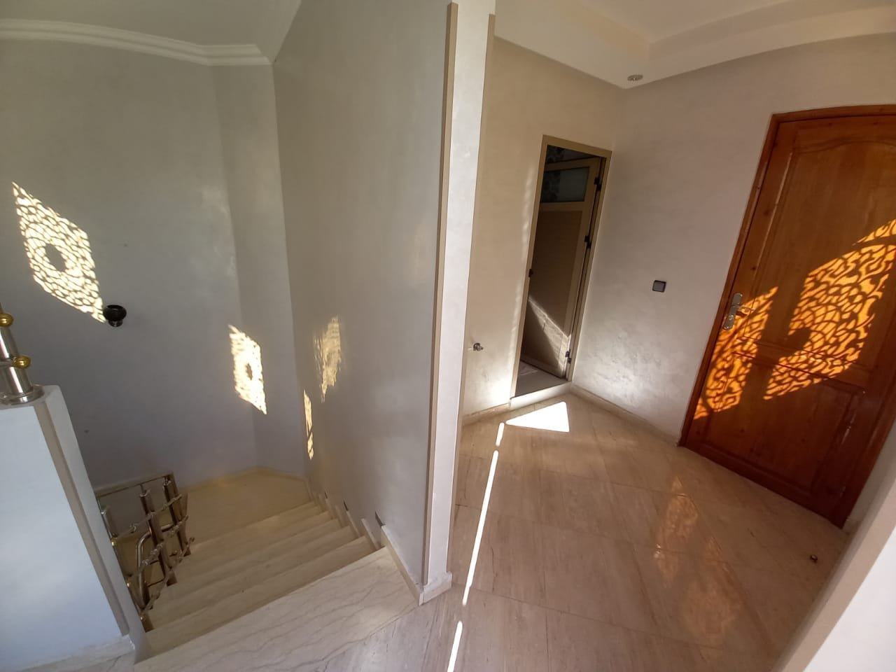 Duplex ( 2 niveau villa ) à louer vide ( non meublé ) situé dans un quartier calme proche de Quick - Targa Ville : Marrakech l'appartement est composé de : au 1 er niveau : - Salon - grande cuisine ( non équipée ) - salle de bain - 2 chambres à coucher ( chaque chambre avec balcon ) au 2 eme niveau : - chambre ( ideal pour un débarras ) - salle de bain - Terrasse - la villa est proche de toutes commodités ( écoles privées, supermarché, Quick, ...........etc ) Loyer : 6.000 DH