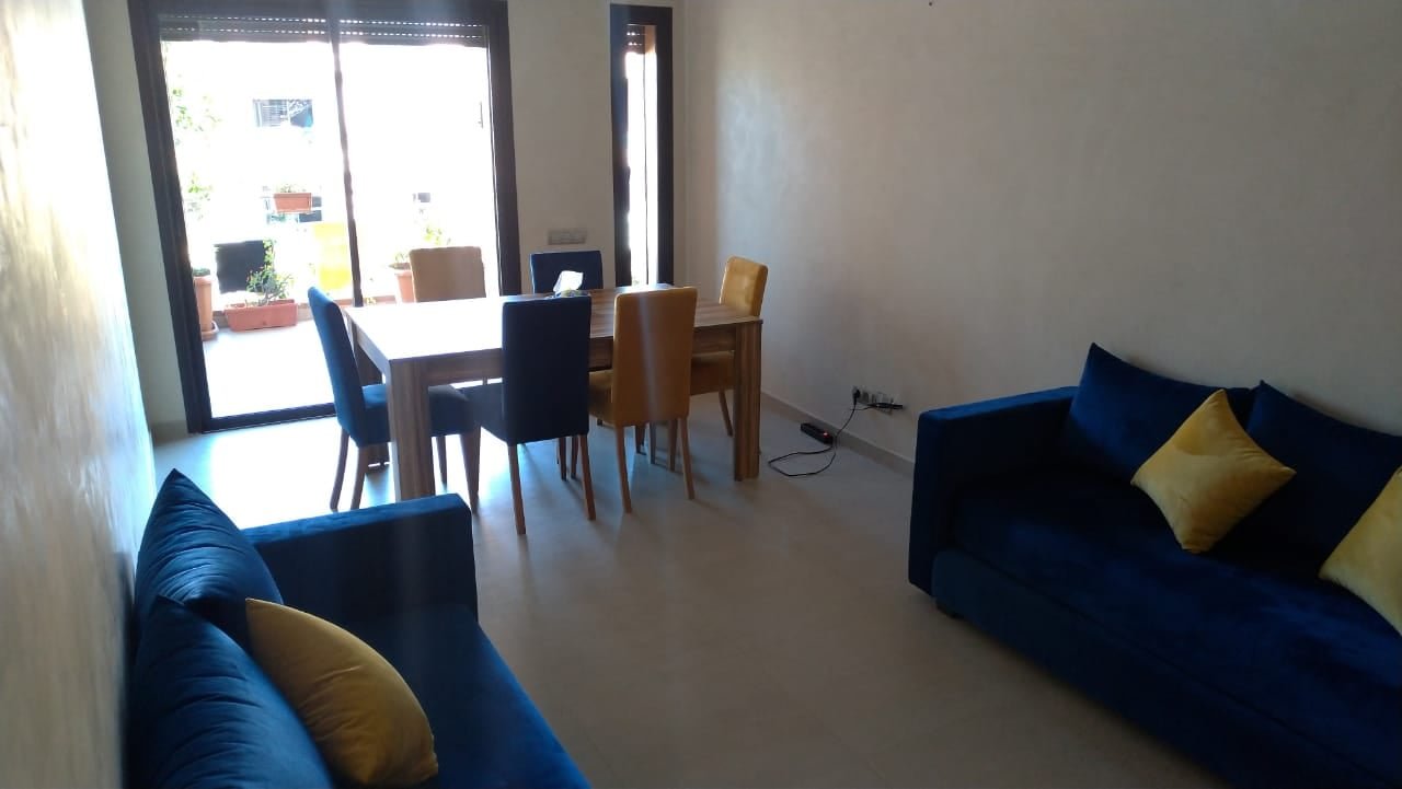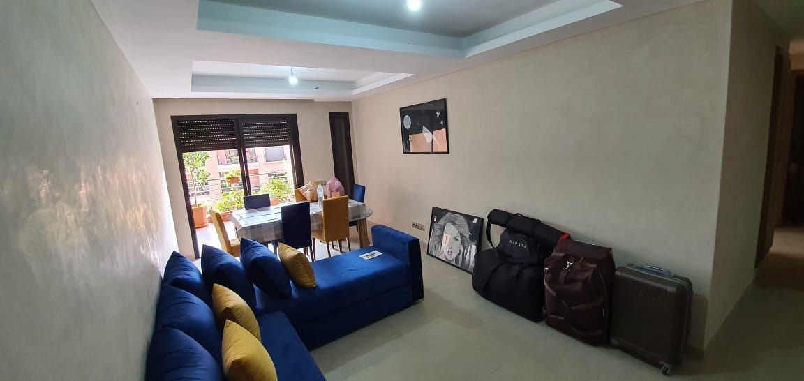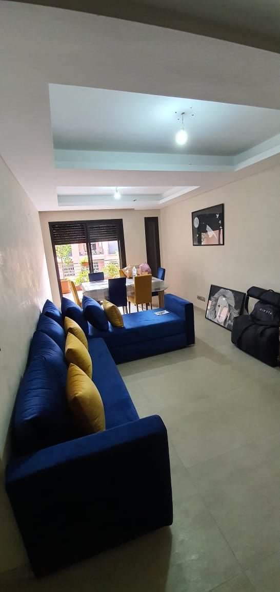 Spacieux Appartement bien meublé à louer ( longue durée ) situé dans une résidence de bon standing proche de pâtisserie Amoud . l'appartement est composé de : - 3 chambres à coucher ( 1 chambre parentale avec sa SDB ) - deuxième salle de bain ( commune entre les deux chambres ) - Salon avec une table à manger - terrasse - cuisine équipée l'appartement est au 4eme etage dans une résidence avec : - Ascenseur, - place parking au sous sol - service de conciergerie - sécurité Loyer : 8.000 DH Superficie : 110 m² Quartier : Route de casa Ville : Marrakech